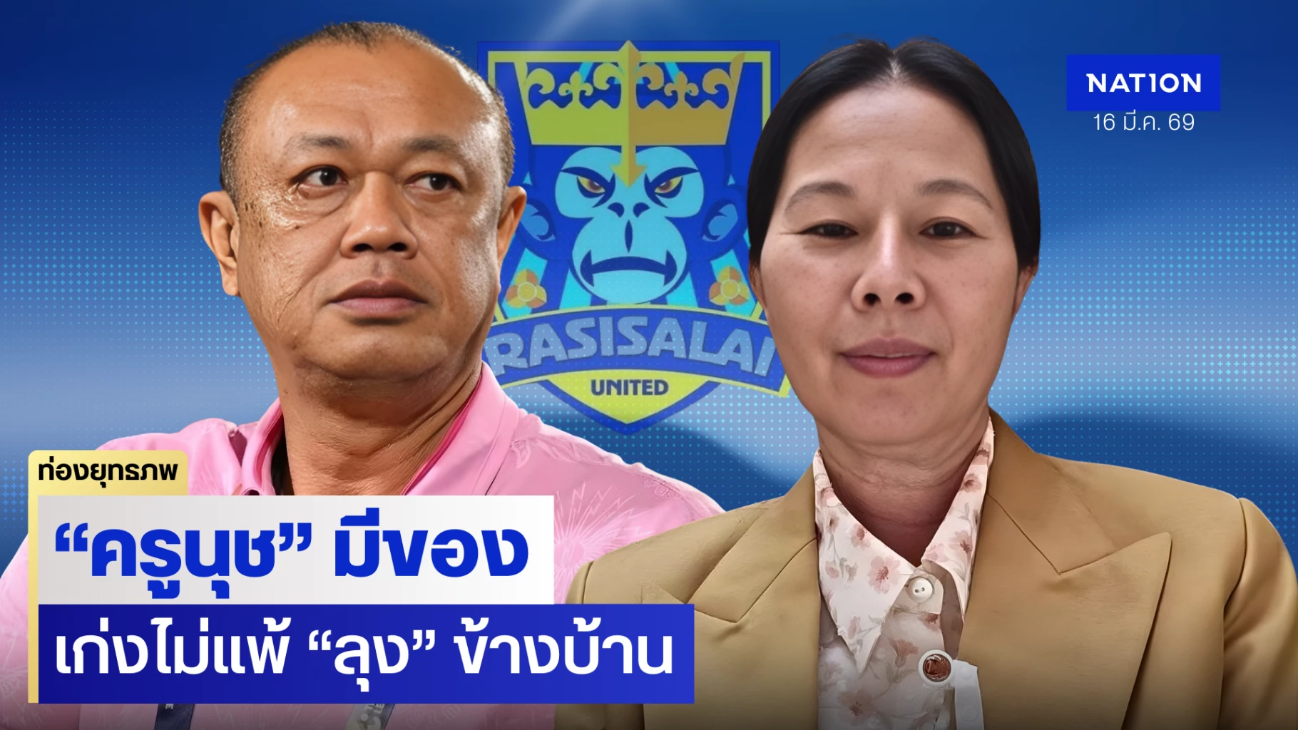 16 มีนาคม 2569 เจ้าแม่ราชาวานร นุชนาถ จารุวงษ์เสถียร โชว์ฝีมือให้ เนวิน ประจักษ์แม้สอบตก สส. แต่ทำทีมลูกหนังรากหญ้าสู่ลีกสูงสุดของประเทศ