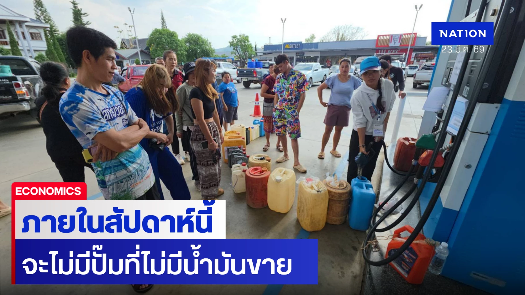 23 มีนาคม 2569 นายพิพัฒน์ รัชกิจประการ รองนายกฯ และ รมว.คมนาคม แถลงภายหลังการประชุมศูนย์บริหารและติดตามสถานการณ์การสู้รบในภูมิภาคตะวันออกกลาง หรือ ศบก.ว่า วันนี้มีการประชุมทำความเข้าใจกับผู้ค้าตามมาตรา 7 ทุกบริษัทและทางโรงกลั่นว่า ขณะนี้จากภาพข่าวในแต่ละวัน อาจเป็นความโกลาหล หรือความตื่นตระหนก ในเรื่องของสถานีบริการต่างๆ ที่ไม่มีน้ำมันจ่ายให้กับประชาชน จึงขอแจ้งให้คนไทยได้รับทราบว่า ในแต่ละวัน ทางโรงงานและผู้ค้าตามมาตรา 7 ได้มีการนำน้ำมันอัดฉีด เข้าสู่ระบบสถานีบริการต่างๆ เกือบ 10,000 สถานี ซึ่งสาเหตุที่เคยเติม 67 ล้านลิตรต่อวัน แต่ในช่วงระยะนี้ ค่าเฉลี่ยอยู่ที่ประมาณ 82-84 ล้านลิตร จึงไม่เพียงพอสำหรับผู้ใช้ในประเทศทั้งหมด