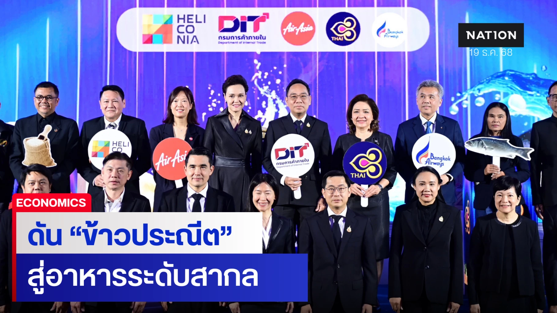 กระทรวงพาณิชย์ เดินหน้ายกระดับ “ข้าวประณีต” และวัตถุดิบเกษตรไทยสู่การเป็นประสบการณ์ด้านอาหารระดับโลก ผ่านโมเดล “Local Ingredients World Class Experiences” เชื่อมโยงสินค้าเกษตรคุณภาพกับอุตสาหกรรมอาหาร การท่องเที่ยว และการบิน เพื่อเพิ่มมูลค่า ขยายตลาด และสร้างรายได้ให้เกษตรกรอย่างเป็นรูปธรรม โดยกรมการค้าภายใน (DIT) ผนึกกำลังภาคเอกชน จับมือบริษัท เฮลิโคเนีย เอช กรุ๊ป จำกัด ผู้ผลิตรายการ MasterChef (Thailand) และ 3 สายการบินชั้นนำ ได้แก่ สายการบินไทยแอร์เอเชีย บริษัท การบินไทย จำกัด (มหาชน) และบริษัท การบินกรุงเทพ จำกัด (มหาชน) หรือบางกอกแอร์เวย์ส เปิดตลาดศักยภาพใหม่ให้สินค้าเกษตรไทยสู่ผู้บริโภคทั้งในและต่างประเทศ