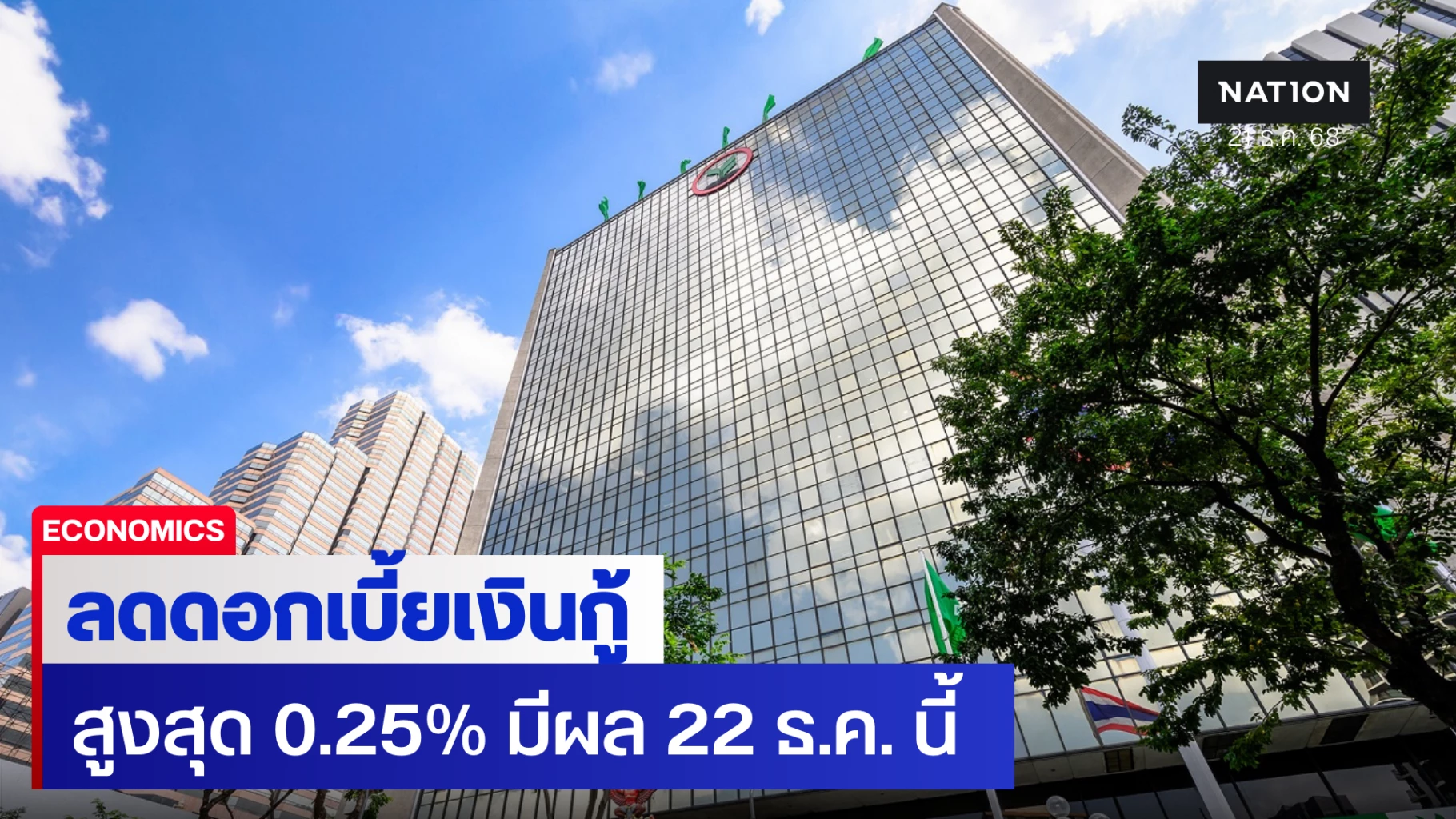 โดยธนาคารได้ปรับลดอัตราดอกเบี้ยเงินกู้ เพื่อดูแลลูกค้าแต่ละกลุ่ม มีผลตั้งแต่วันที่ 22 ธันวาคม 2568 เป็นต้นไป ดังนี้