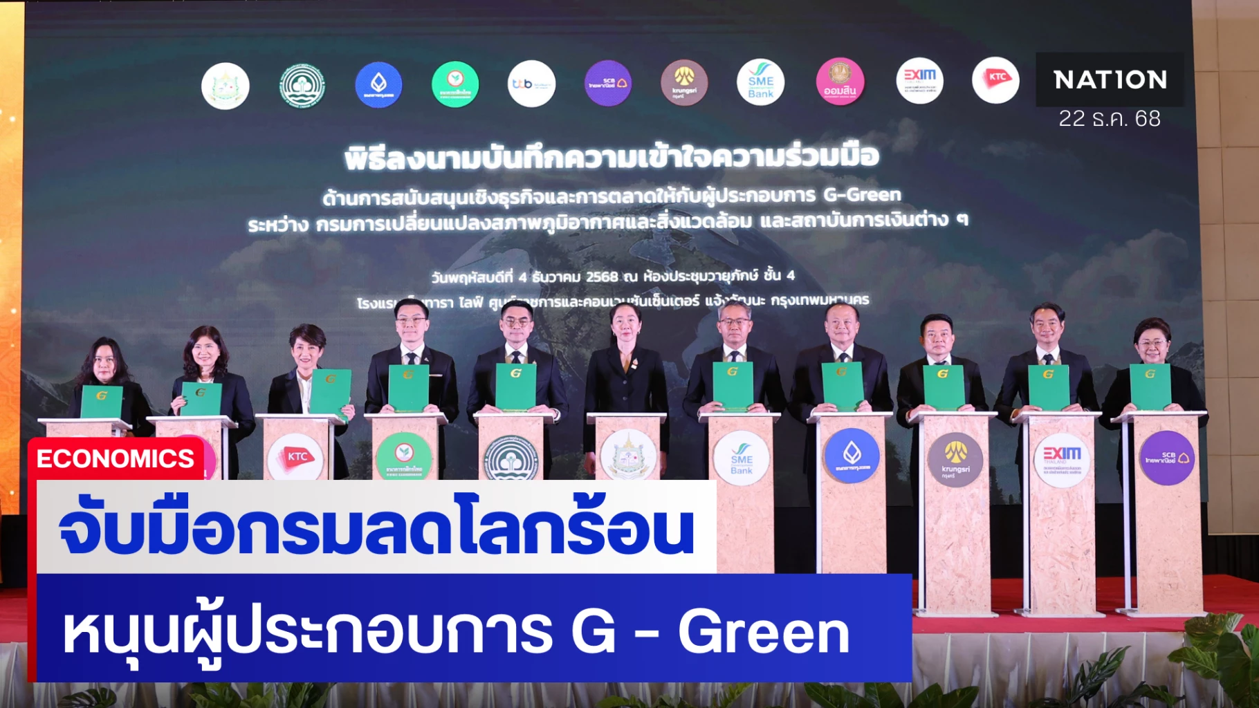 นางศิริพร เลิศสัตยสุกใส รองผู้อำนวยการธนาคารออมสิน ร่วมลงนามบันทึกความเข้าใจความร่วมมือด้านการสนับสนุนเชิงธุรกิจและการตลาดให้กับผู้ประกอบการ G – Green กับกรมการเปลี่ยนแปลงสภาพภูมิอากาศและสิ่งแวดล้อม โดยมี ดร. พิรุณ สัยยะสิทธิ์พานิช อธิบดีกรมการเปลี่ยนแปลงสภาพภูมิอากาศและสิ่งแวดล้อม เป็นผู้ลงนาม พร้อมด้วยผู้บริหารจากสถาบันการเงินรวม 8 หน่วยงาน และมี ดร.ชญานันท์ ภักดีจิตต์ ปลัดกระทรวงทรัพยากรธรรมชาติและสิ่งแวดล้อม ร่วมเป็นเกียรติและสักขีพยาน