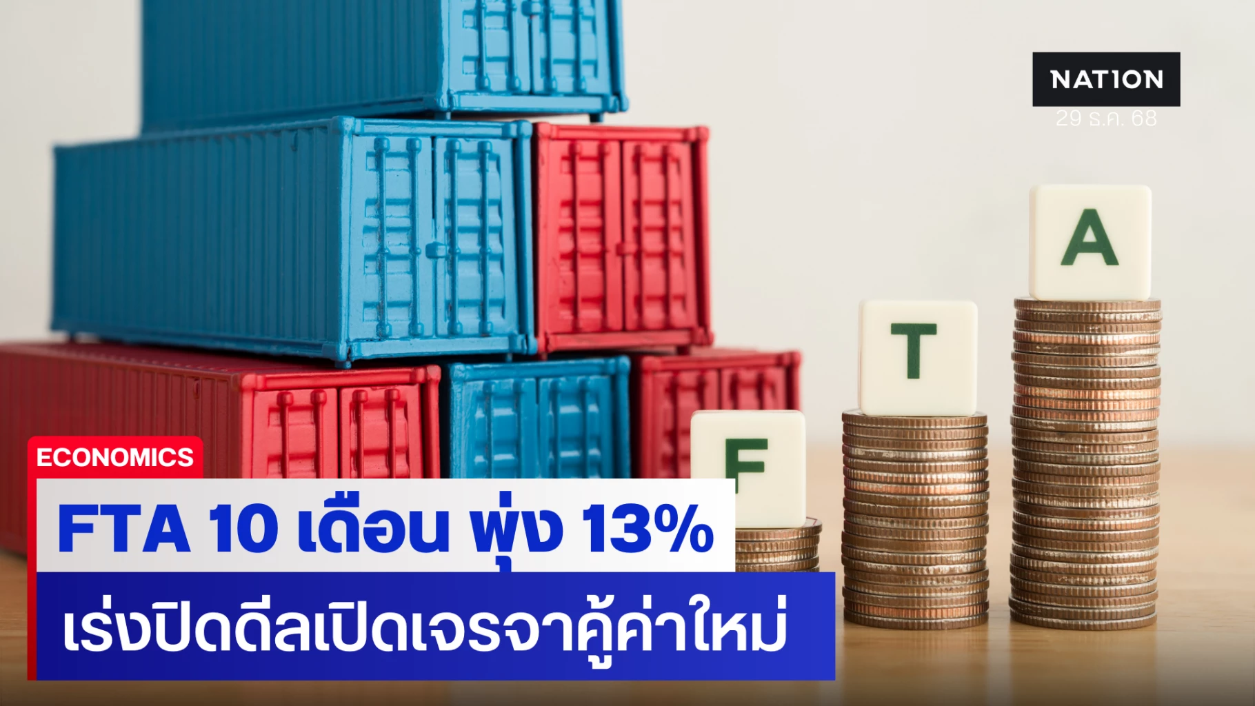 การค้าไทยกับคู่เจรจา FTA 10 เดือน ปี 68 พุ่ง 13% จีนนำโด่งอันดับ 1
