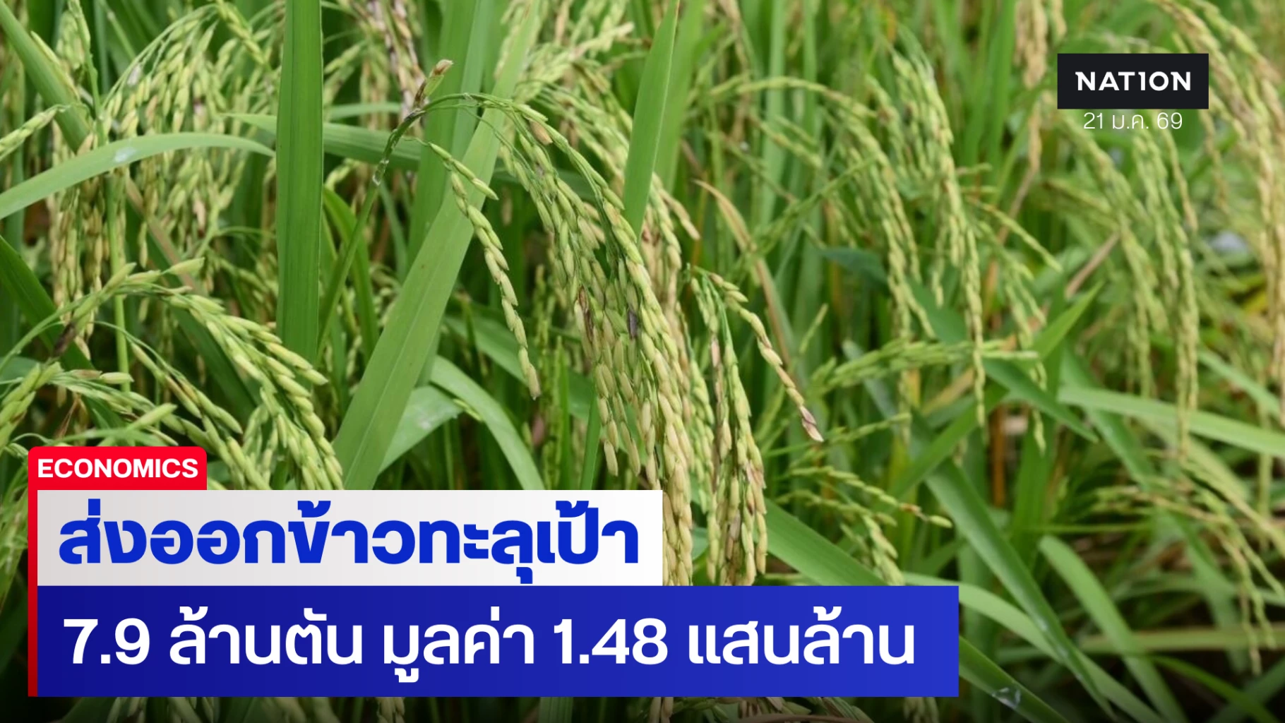 พาณิชย์ปลื้มส่งออกข้าวทะลุเป้า 7.9 ล้านตัน มูลค่า 1.48 แสนล้าน