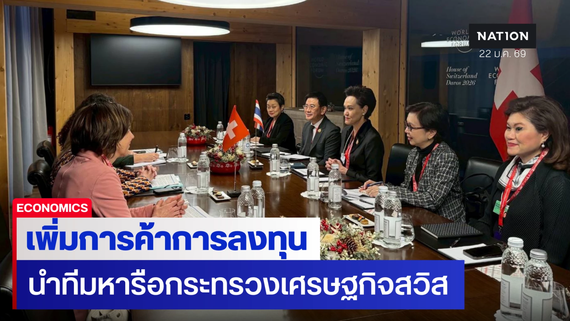 นางศุภจี สุธรรมพันธุ์ รัฐมนตรีว่าการกระทรวงพาณิชย์ เปิดเผยว่า ในโอกาสที่ได้เดินทางมาเข้าร่วมการประชุมประจำปีสภาเศรษฐกิจโลก(World Economic Forum: WEF) ประจำปี 2026 ณ เมืองดาววอส ประเทศสวิตเซอร์แลนด์ และได้พบหารือกับนางเฮเลเนอ บุดลีเกอร์ อาร์ทิเอดาปลัดกระทรวงกิจการเศรษฐกิจสมาพันธรัฐสวิส เพื่อหารือแนวทางกระชับความสัมพันธ์ทางเศรษฐกิจการค้าระหว่างไทยและสวิตเซอร์แลนด์