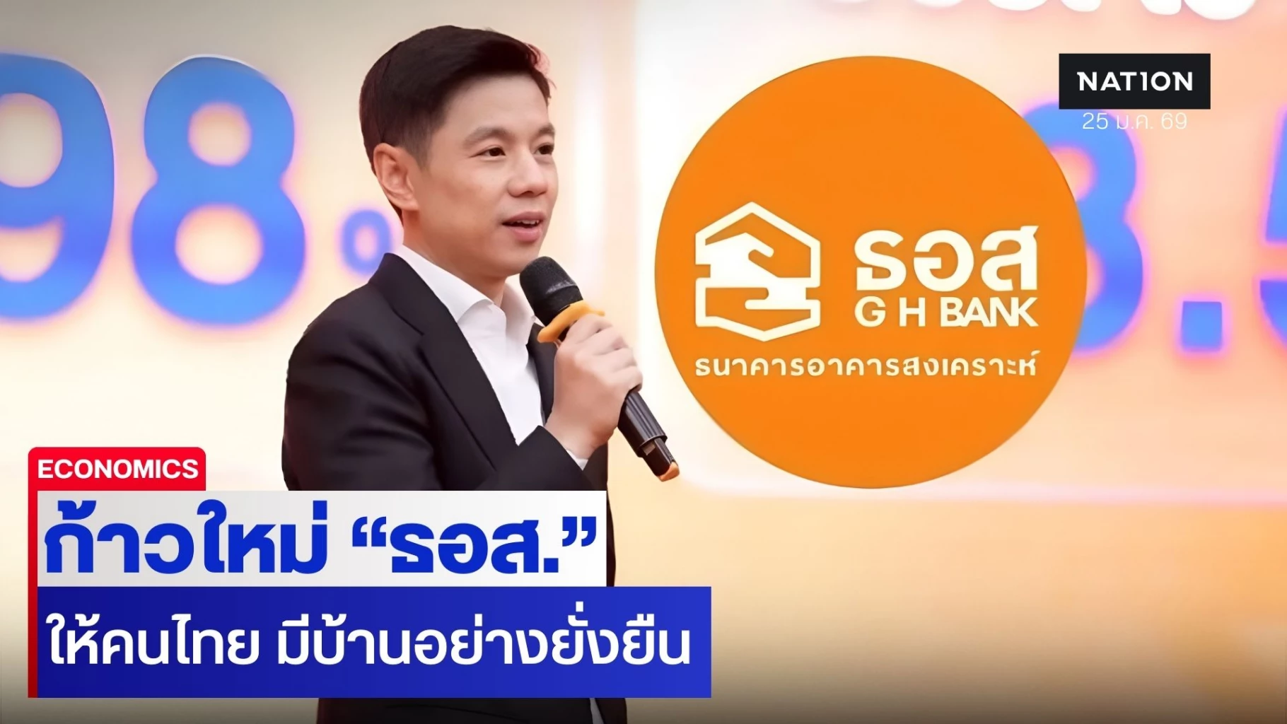 25 มกราคม 2569 กรุงเทพธุรกิจ เปิดวิสัยทัศน์ “มหัทธนะ” กรรมการผู้จัดการ ธนาคารอาคารสงเคราะห์ คนที่ 15 นำทีมผู้บริหารและพนักงาน ร่วมกันขับเคลื่อนองค์กรภายใต้แนวคิด "Beyond Housing Bank : มากกว่าการปล่อยกู้คือเพื่อนคู่คิดเรื่องบ้าน" ที่อยู่เคียงข้างกันตั้งแต่วันแรกของการมีบ้าน ดูแลลูกค้าและเติบโตไปด้วยกัน พร้อมเปลี่ยนผ่าน G H BANK NEXT : Intelligent Sustainable Housing Companion… ก้าวใหม่ ธอส. ทำให้คนไทยมีบ้าน อย่างยั่งยืน และมั่นคงด้วยเทคโนโลยี ทำให้คนไทยมีบ้านง่ายขึ้น ด้วยดิจิทัล ดาต้า และสนับสนุนเสถียรภาพภาคอสังหาริมทรัพย์