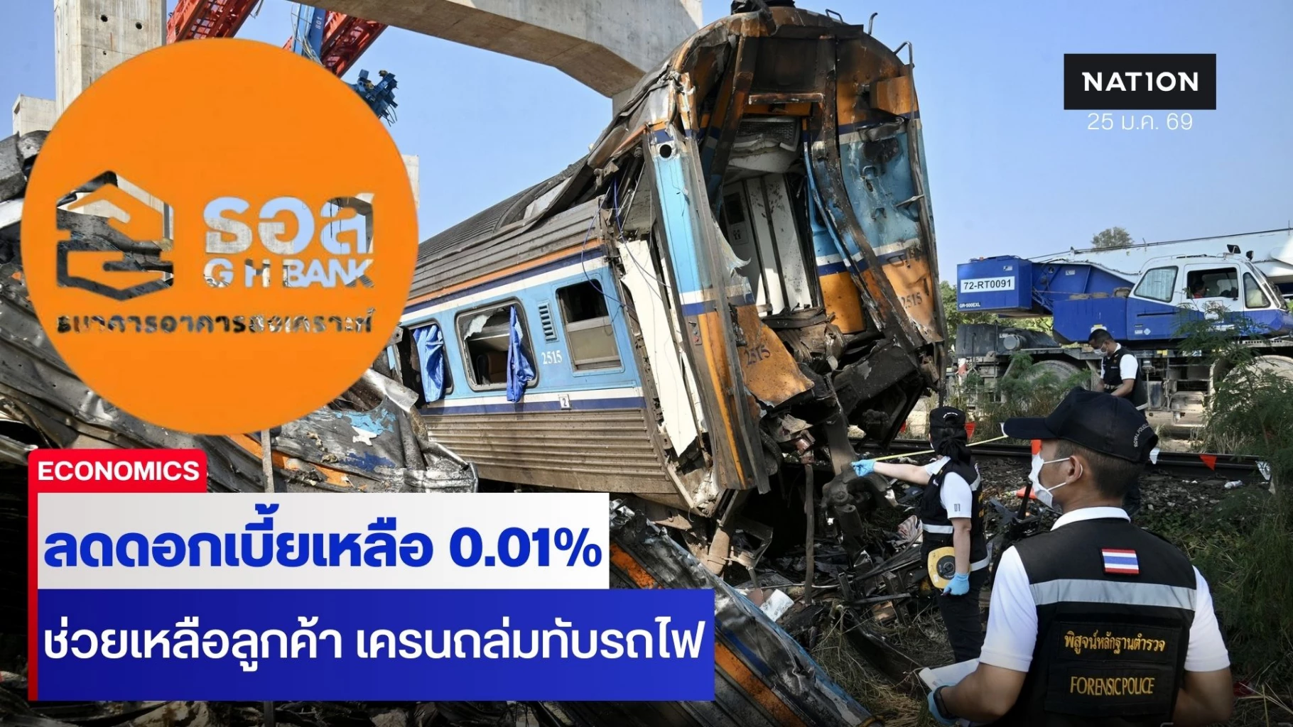 "ธอส."ช่วยเหลือลูกค้าที่ประสบเหตุ "เครนถล่มทับรถไฟ" ลดดอกเบี้ยเหลือ 0.01% ต่อปี
