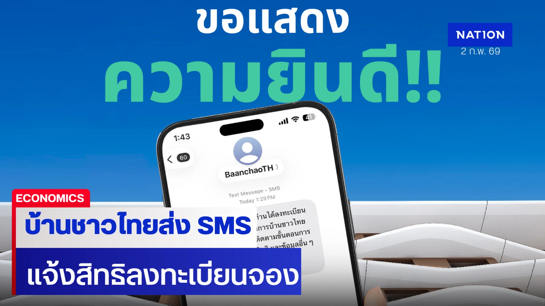 “บ้านชาวไทย” ทยอยแจ้งผลผู้ได้รับสิทธิเข้าร่วมจองโครงการ ผ่านทาง SMS หลังเปิดจองตั้งแต่ 19 ม.ค.69 ผู้สนใจรีบด่วนภายใน 20 ก.พ.นี้