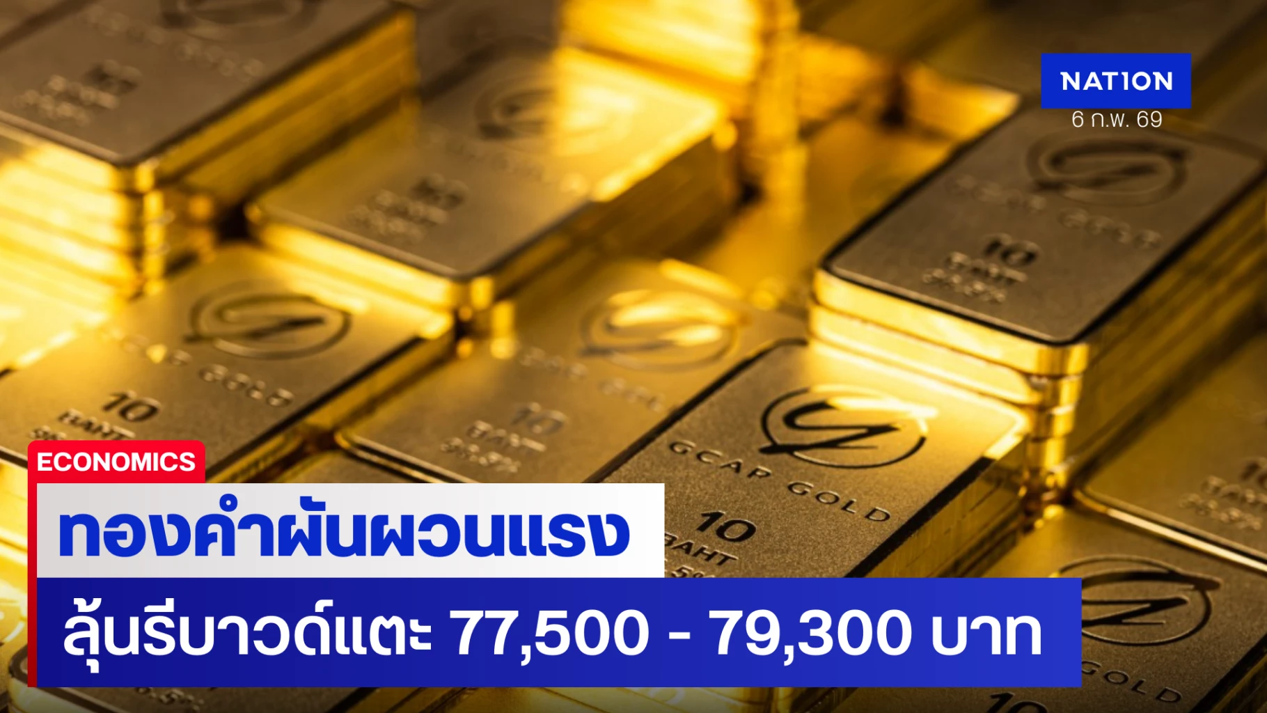 ทองคำผันผวนแรง หลังร่วงหนักสุดในรอบหลายทศวรรษ จากการปรับเพิ่มขึ้นอย่างร้อนแรง ลุ้นรีบาวด์ระยะสั้นขึ้นไปทดสอบ $5,200 / $5,400 ดอลลาร์ (ทองคำไทย 77,500 –79,300 บาท)