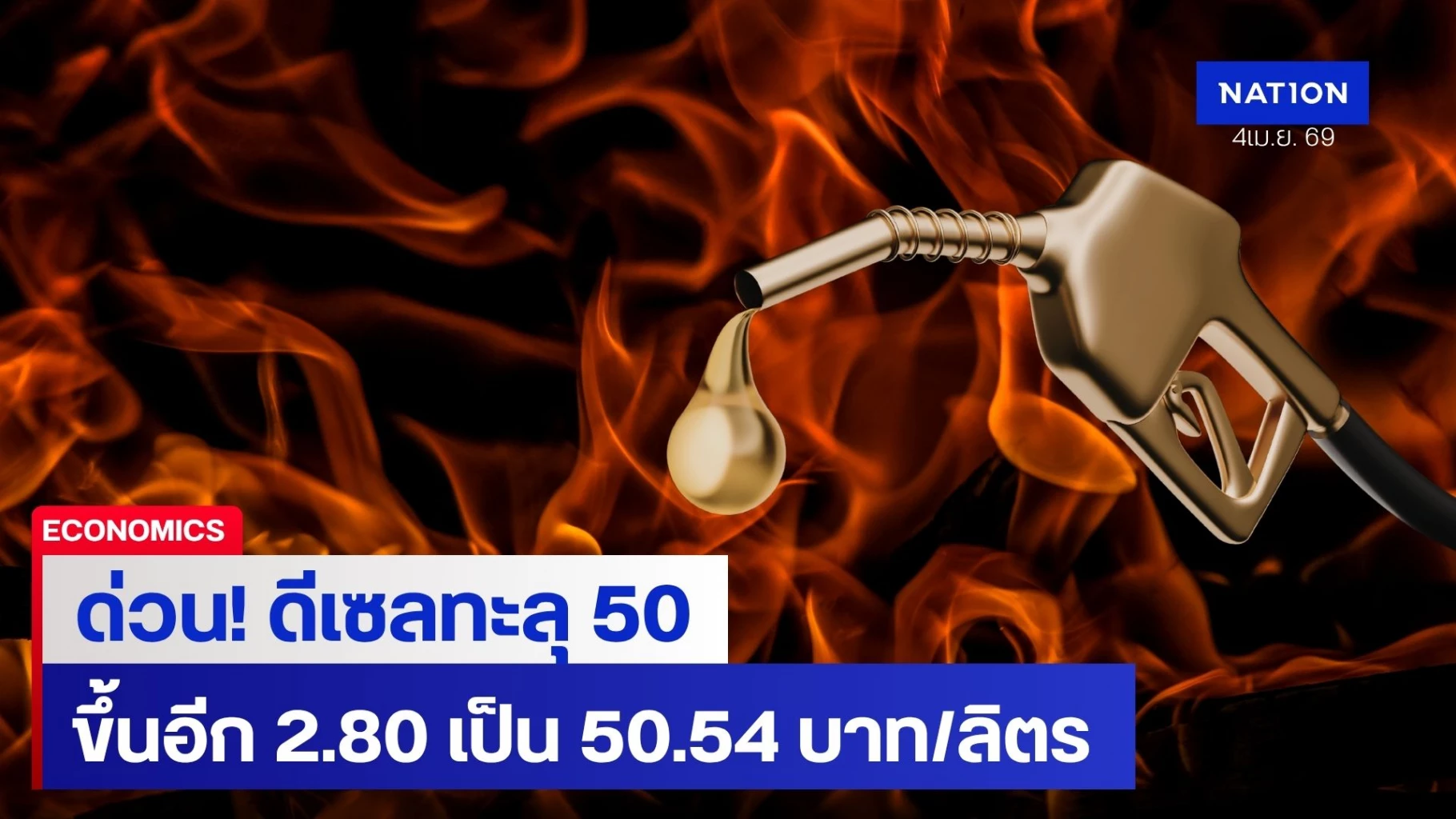 ด่วน! ดีเซลขึ้นราคาอีก 2.80 บาท/ลิตร ราคาขายทะลุ 50.54 พรุ่งนี้