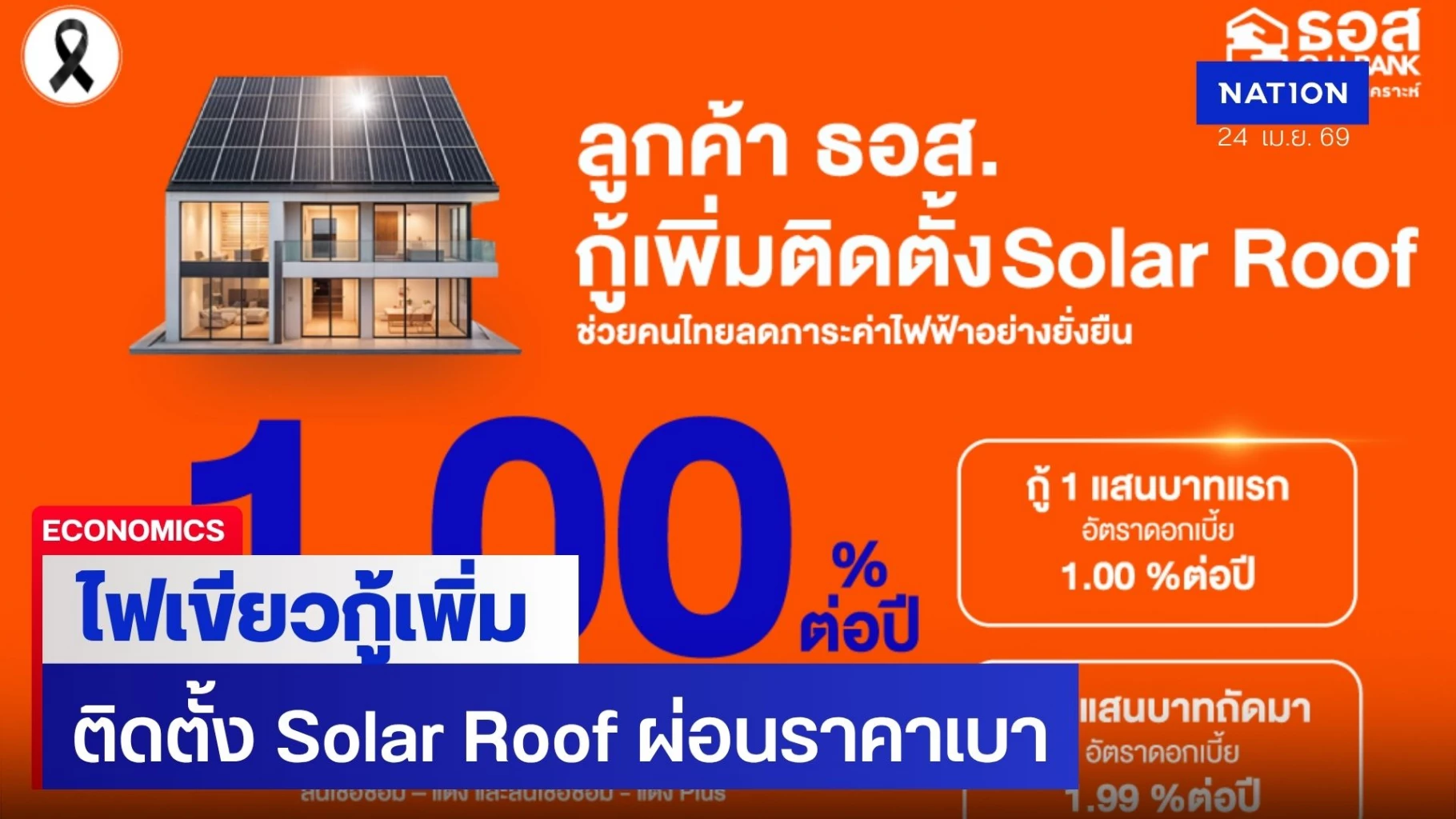 ธอส. ไฟเขียวกู้เพิ่มติดตั้ง Solar Roof ดอกเบี้ยเริ่ม 1% ต่อปี
