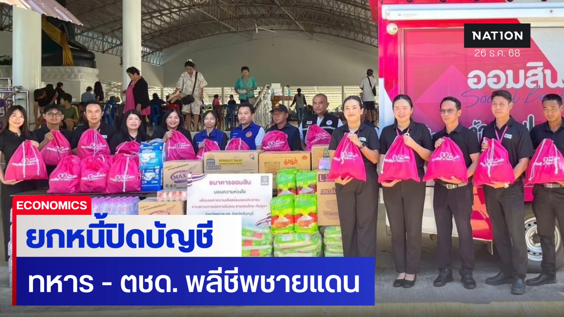 นางลภาวรรณ จันทร์กระจ่าง รองผู้อำนวยการธนาคารออมสิน รักษาการแทนผู้อำนวยการธนาคารออมสิน เปิดเผยว่า จากสถานการณ์ความไม่สงบในพื้นที่บริเวณชายแดนไทย-กัมพูชา ซึ่งส่งผลให้เกิดความสูญเสียต่อกำลังพลผู้ปฏิบัติหน้าที่ปกป้องอธิปไตยของประเทศ ล่าสุด ธนาคารออมสิน ออกชุดมาตรการเฉพาะกิจ ประกาศยกหนี้ปิดบัญชีสินเชื่อเป็นกรณีพิเศษ แก่ทหาร ตำรวจตระเวนชายแดน (ตชด.) และกำลังพลหน่วยอื่น ๆ ที่เสียชีวิตจากการปฏิบัติหน้าที่ในเหตุการณ์ดังกล่าว ตั้งแต่วันที่ 7 ธันวาคม 2568 เป็นต้นมา