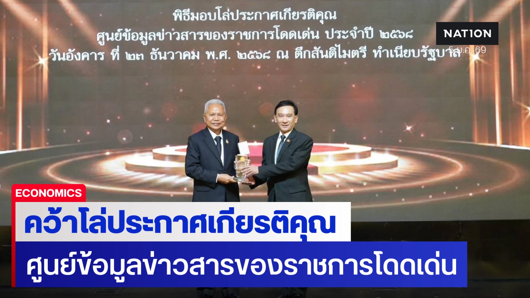 ดร.มหัทธนะ อัมพรพิสิฏฐ์ กรรมการผู้จัดการธนาคารอาคารสงเคราะห์ (ธอส.) รับมอบโล่ประกาศเกียรติคุณศูนย์ข้อมูลข่าวสารของราชการโดดเด่น ประจำปี 2568 โดยธอส.ได้รับโล่ประกาศเกียรติคุณศูนย์ข้อมูลข่าวสารของราชการโดดเด่น ประจำปี 2568 ประเภทโล่เงิน เนื่องจาก ธอส. เป็นหน่วยงานรัฐที่ผ่านเกณฑ์การประเมินศูนย์ข้อมูลข่าวสารของราชการโดดเด่นจากหน่วยงานรัฐที่เข้าร่วมทั้งสิ้น 151 หน่วยงานฯ