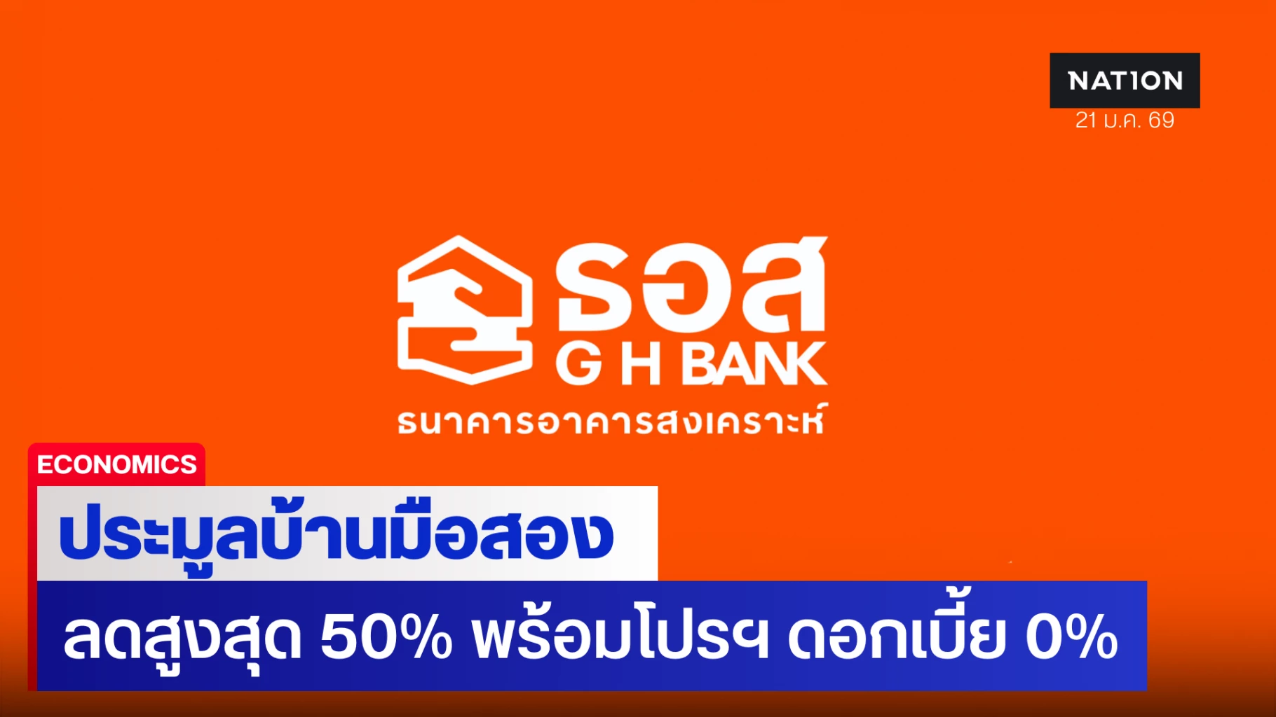 นางสาวอรนุช พงษ์ประยูร รองกรรมการผู้จัดการ กลุ่มงานปรับโครงสร้างหนี้ ธนาคารอาคารสงเคราะห์ (ธอส.) เปิดเผยว่า ธอส. พร้อมเดินหน้าสานต่อพันธกิจ “ทำให้คนไทยมีบ้าน” ผ่านช่องทางที่เข้าถึงได้อย่างสะดวกยิ่งขึ้น จัดงาน “ประมูลบ้านมือสอง ธอส. ออนไลน์ ประจำปี 2569 ครั้งที่ 1” ในวันพุธที่ 21 มกราคม 2569 ระหว่างเวลา 12.00 -12.30 น. ผ่าน Application : GHB ALL HOME โดยนำทรัพย์เด่น ทำเลดี ราคาคุ้มค่ากว่า 1,600 รายการทั่วประเทศ
