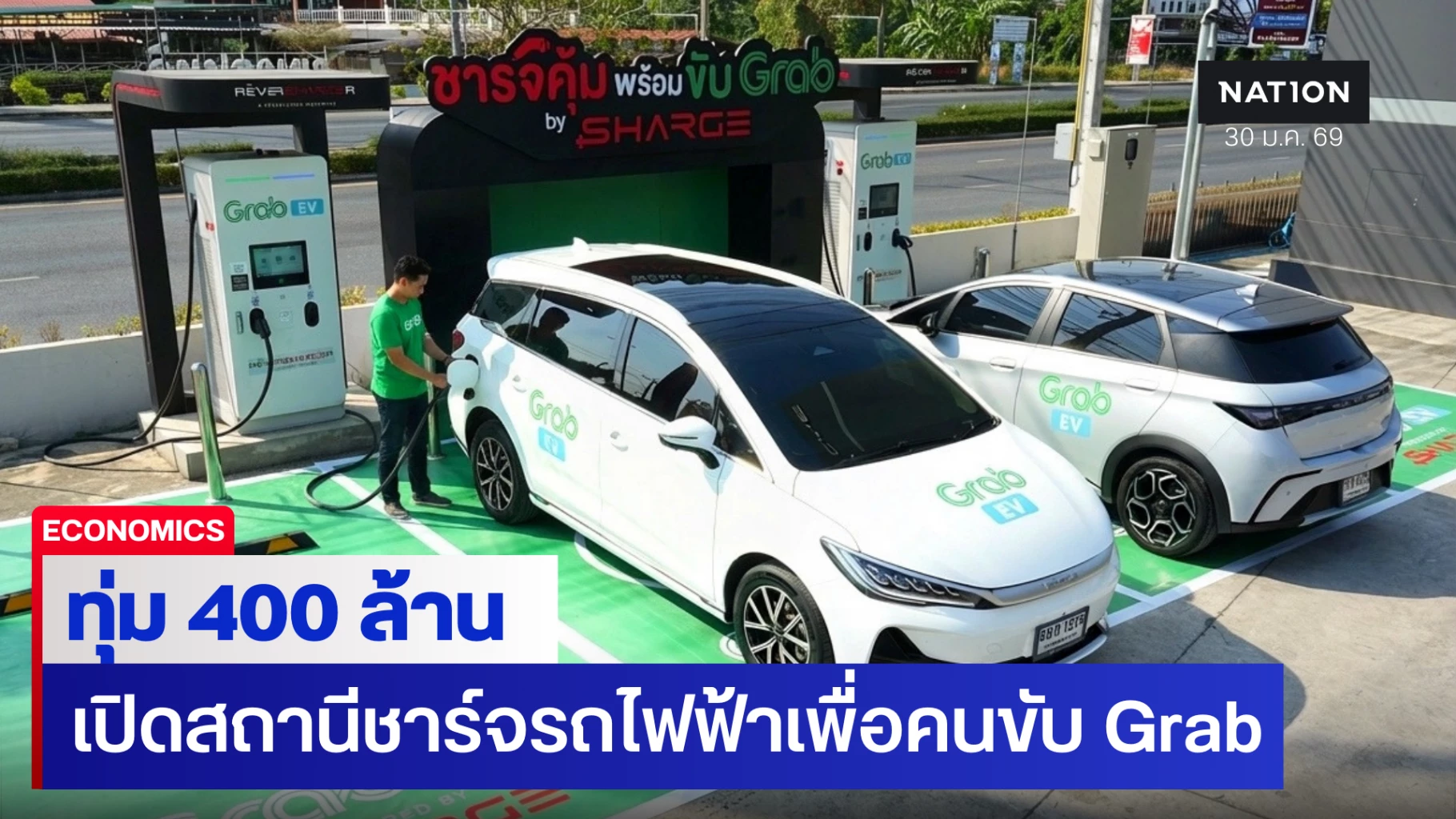 SHARGE ผนึก แกร็บ ทุ่ม 400 ล้าน เตรียมเปิดสถานีชาร์จรถไฟฟ้าเพื่อคนขับ Grab นำร่องที่ สุวรรณภูมิ ดอนเมือง และพัทยา เล็งขยาย 40 แห่งภายในปี 2570