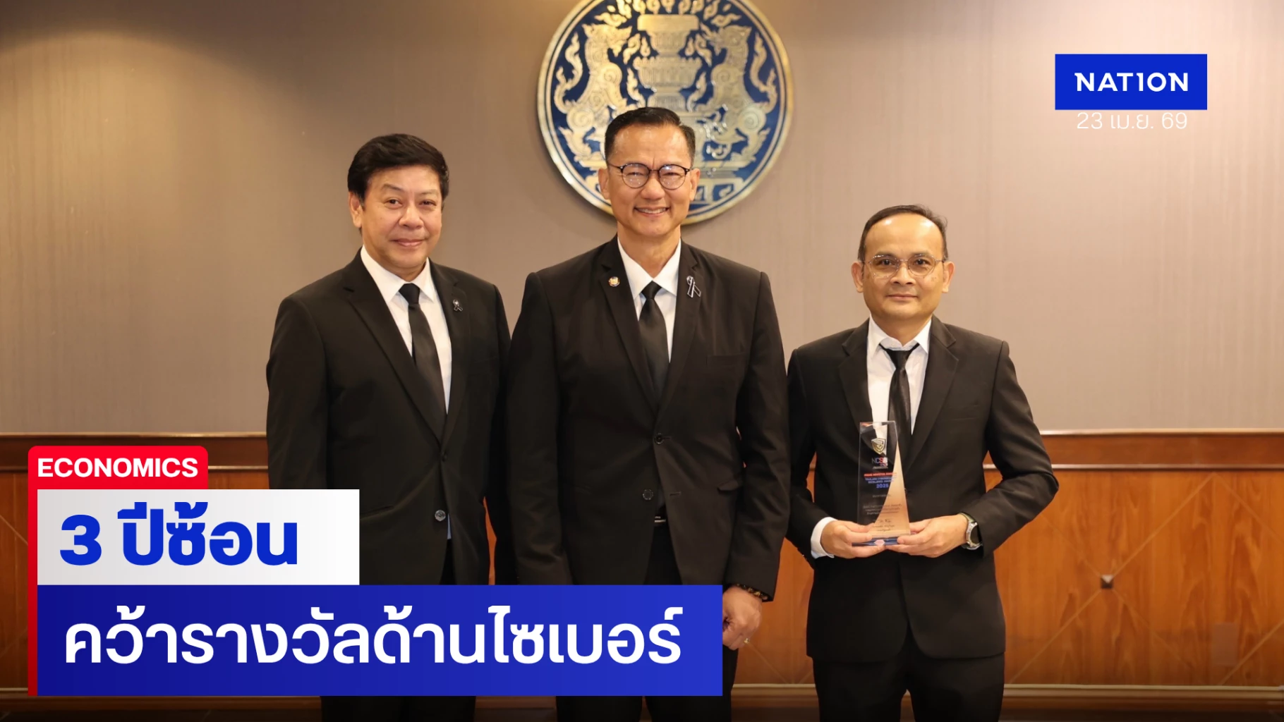 นายมานะ ทรวงทองหลาง รองผู้อำนวยการธนาคารออมสิน เป็นผู้แทนธนาคารรับมอบโล่รางวัลเกียรติยศ Prime Minister Awards: Thailand Cybersecurity Excellence Awards 2025 ประเภท “Best Performance Awards” ต่อเนื่องเป็นปีที่ 3 โดยผ่านการประเมินในระดับดีเลิศ ด้วยธนาคารออมสินมีความก้าวหน้าด้านความมั่นคงปลอดภัยไซเบอร์ มีผลงานโดดเด่นในการป้องกัน รับมือ และบริหารจัดการภัยคุกคามไซเบอร์ได้อย่างมีประสิทธิภาพ สอดคล้องกับการพัฒนาศักยภาพด้านความมั่นคงปลอดภัยไซเบอร์ ให้เป็นไปตามมาตรฐานสากลและพระราชบัญญัติการรักษาความมั่นคงปลอดภัยไซเบอร์ พ.ศ. 2562