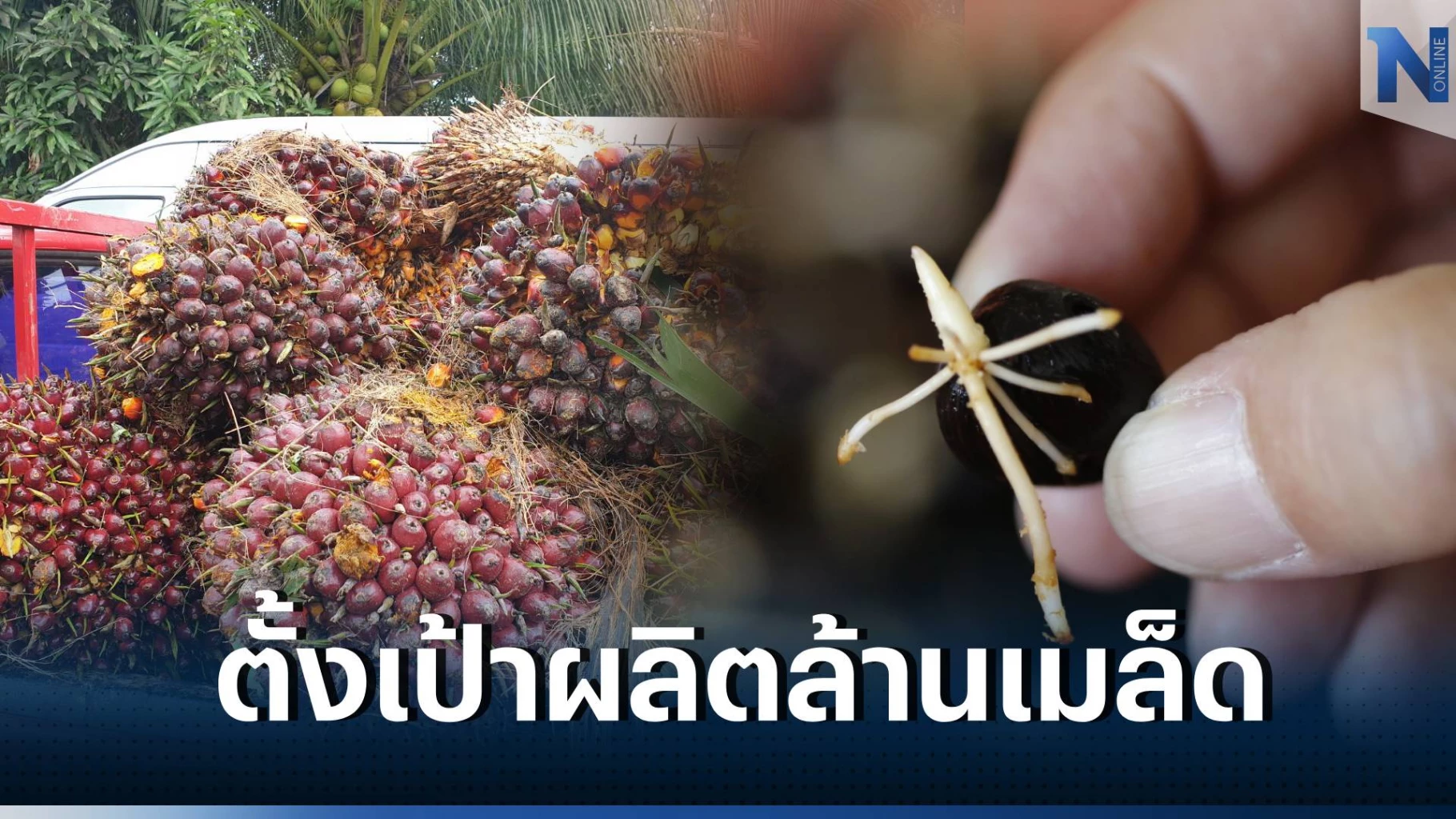 รองอธิบดีกรมวิชาการเกษตร กล่าวว่า ในเดือนกรกฎาคม 2565 - มิถุนายน 2567 ศูนย์วิจัยปาล์มน้ำมันสุราษฏร์ธานี ร่วมกับศูนย์วิจัยปาล์มน้ำมันกระบี่ กรมวิชาการเกษตร ได้ตั้งเป้าหมายผลิตเมล็ดงอกจำนวน 1,000,000 เมล็ด เพื่อจำหน่ายให้กับหน่วยงานภาครัฐ และ แปลงเพาะกล้าเอกชน ที่ได้รับการรับรองจากกรมวิชาการเกษตร