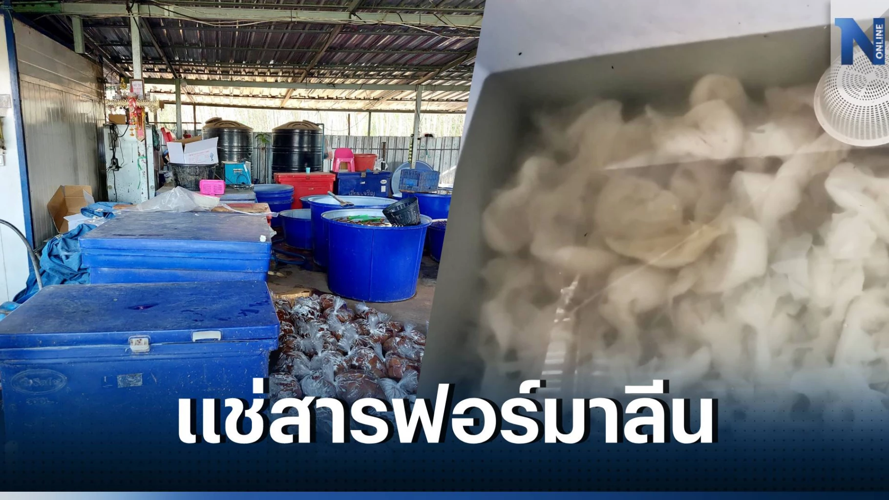 เจ้าหน้าที่ชุดเฉพาะกิจกรมปศุสัตว์ พบชิ้นส่วนสุกรไม่ทราบแหล่งที่มา 544 กิโลกรัม อีกทั้งพบการแช่สไบนาง และ หมึกกรอบในถังผสมสารฟอร์มาลีน มีแกลลอนฟอร์มาลินขนาด 20 ลิตร จำนวนกว่า 20 แกลลอน นอกจากนี้พบหลักฐานเพิ่มเติมเป็นใบเสร็จ ที่แสดงรายชื่อลูกค้า และ ร้านหมูกระทะ ที่ส่งจำหน่ายเนื้อสัตว์