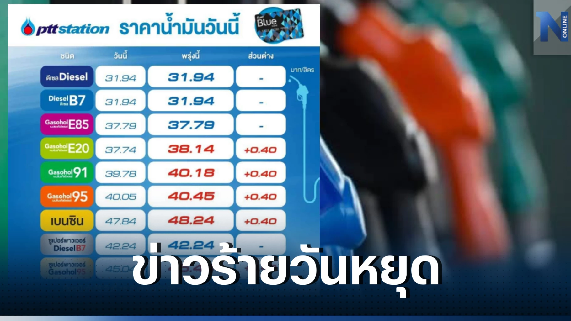 - แก๊สโซฮอล์ 95 อยู่ที่ 40.45 บาทต่อลิตร