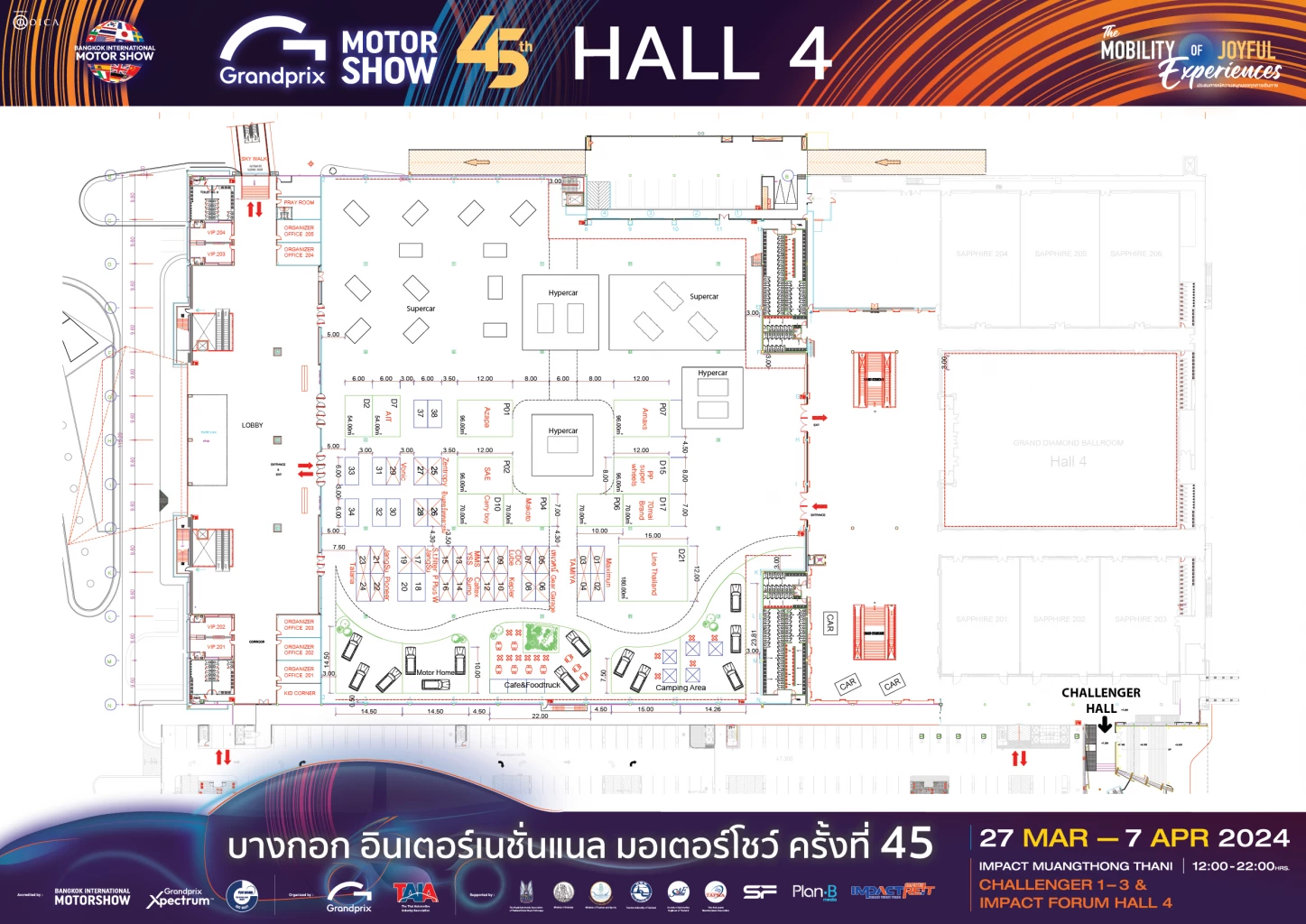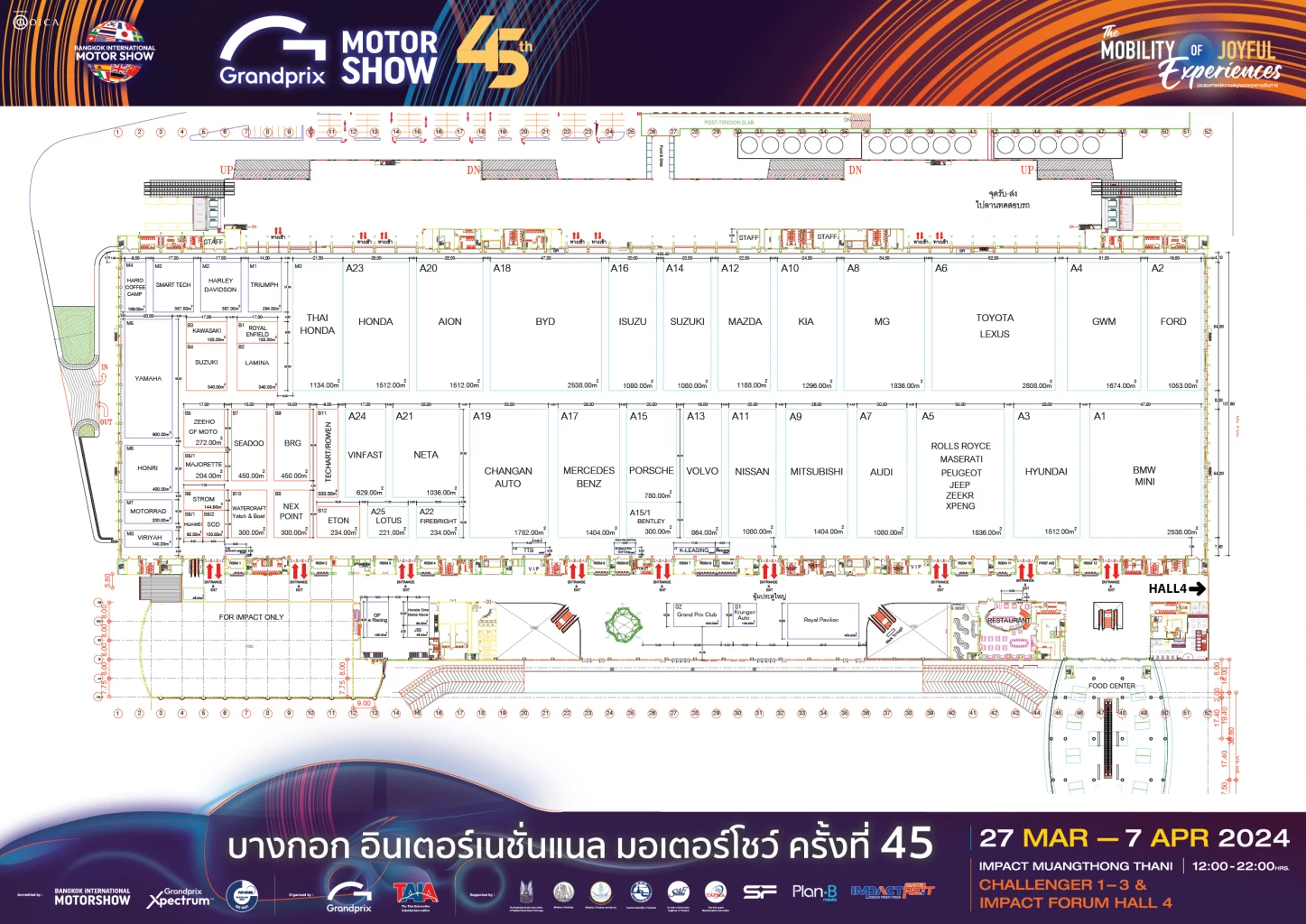 โดยมีการขยายพื้นที่จัดแสดงไปยังอาคาร อิมแพค ฟอรั่ม ฮอลล์ 4 รวมพื้นที่จัดแสดงภายในอาคาร กว่า 76,000 ตารางเมตร จากเดิมอยู่ที่ 60,000 ตารางเมตร โดยใช้งบลงทุนไปกว่า 300 ล้านบาท ถือว่าพิเศษและยิ่งใหญ่มากกว่าทุกๆ ปี โดยในส่วนของ ฟอรัม ฮอลล์ 4 เป็นส่วนพื้นที่ของการจัดแสดงยานยนต์ มอเตอร์โฮม อุปกรณ์กรณ์ตกแต่งรถยนต์ Glamping Zone และ ไฮเปอร์คาร์ ซุปเปอร์คาร์ คลาสสิคคาร์ ที่หาชมได้ยาก อาทิ Lamborghini Countach LPI 800-4 ที่มีเพียง 112 คัน ทั่วโลกเท่านั้น และคันที่ 112 ได้มาจัดแสดงอยู่ในงานเรา