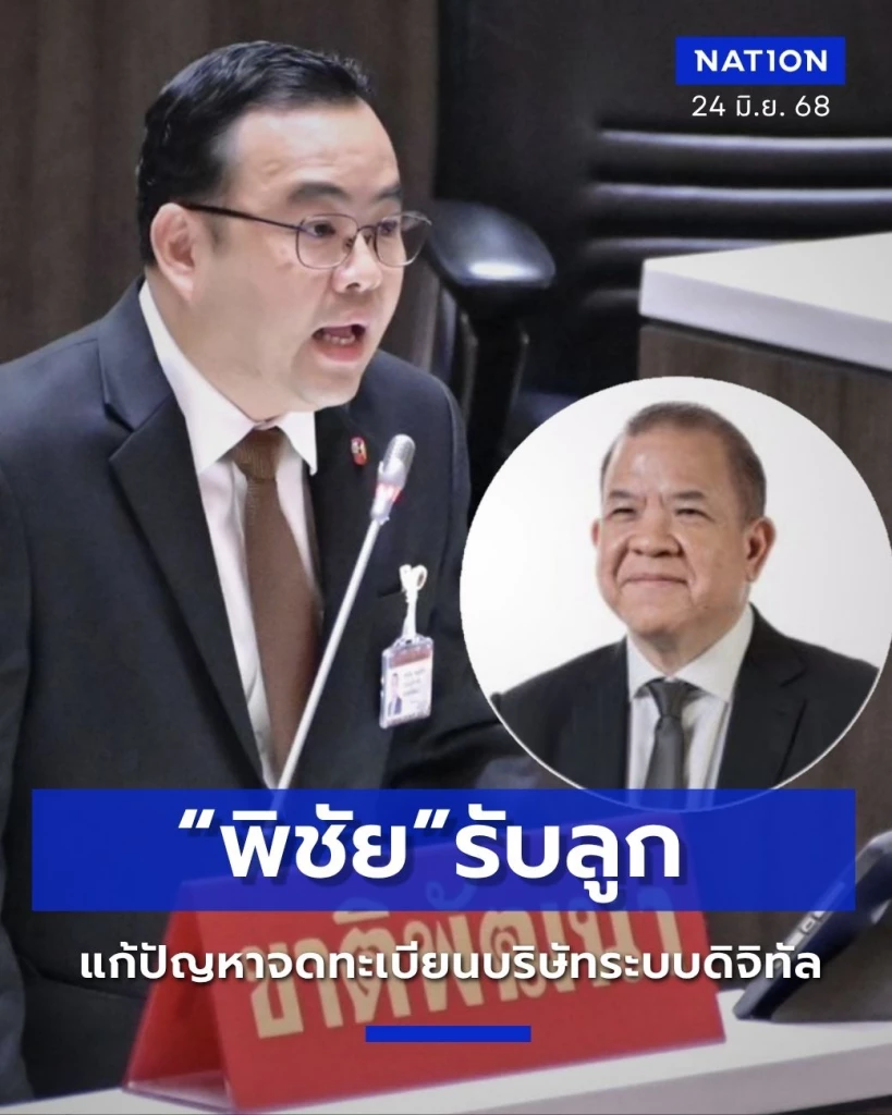 นายพิชัย นริพทะพันธุ์ รัฐมนตรีว่าการกระทรวงพาณิชย์ ได้ลงนามในหนังสือถึงประธานสภาผู้แทนราษฎร เรื่องการดำเนินการตอบข้อหารือของ นายอรัญ พันธุมจินดา สส.บัญชีรายชื่อ พรรคชาติพัฒนา ที่นำเสนอปัญหาของประชาชนในการจดทะเบียนนิติบุคคล เนื่องจากกรมพัฒนาธุรกิจการค้า กระทรวงพาณิชย์ ได้ประกาศยกเลิกการจดทะเบียนด้วยเอกสารแบบพิมพ์ (Walk in) ทั่วประเทศตั้งแต่ 1 กรกฎาคม 2568 เป็นต้นไป โดยจะให้ประชาชนจดทะเบียนผ่าน “ระบบจดทะเบียนนิติบุคคลดิจิทัล (DBD Biz Regist) เท่านั้น