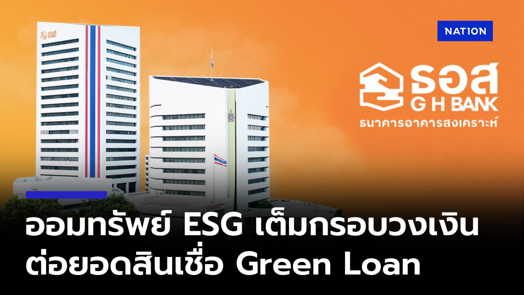ธนาคารอาคารสงเคราะห์ (ธอส.) ขอขอบคุณลูกค้าที่ให้ความสนใจ “เงินฝากออมทรัพย์ ESG” อัตราดอกเบี้ยเงินฝากสูงถึง 1.55% ต่อปี เป็นเงินฝากภายใต้โครงการ ESG Funding ปัจจุบันเต็มกรอบวงเงินแล้ว ธอส. จึงขอปิดรับเปิดบัญชีดังกล่าว ทั้งนี้ลูกค้าทั่วไปและหน่วยงานหรือพนักงานของหน่วยงานที่มีการพัฒนาองค์กรอย่างยั่งยืน ที่เปิดบัญชีเงินฝากออมทรัพย์ ESG เป็นส่วนหนึ่งในการร่วมอนุรักษ์สิ่งแวดล้อมกับ ธอส.
