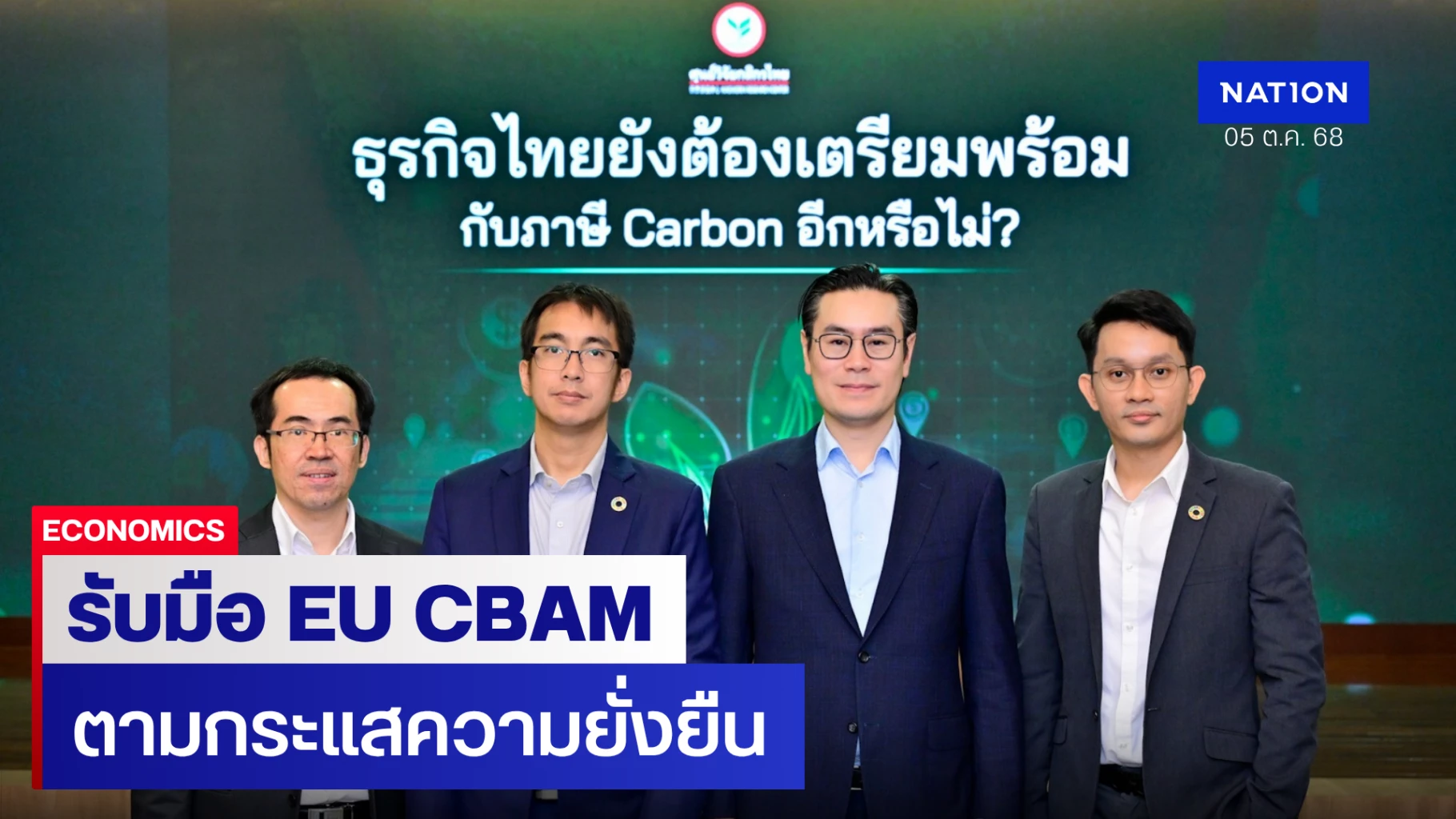 ดร. กฤตย์ สีตะธนี ผู้ช่วยกรรมการผู้จัดการ บริษัท ศูนย์วิจัยกสิกรไทย จำกัด เปิดเผยว่า ถึงแม้สหรัฐฯ มีการชะลอการดำเนินการเรื่องความยั่งยืน แต่ประเทศคู่ค้าสำคัญโดยเฉพาะ EU จะเริ่มเก็บค่าธรรมเนียมคาร์บอนจากมาตรการ EU CBAM ตั้งแต่ต้นปีหน้า ส่งผลให้สินค้านำเข้าจากไทยต้องรับภาระต้นทุนคาร์บอน และ EU จะทยอยเพิ่มความเข้มข้นจนเต็มรูปแบบหลังปี 2577 นอกจากนี้ ยังมีแนวโน้มที่จีน และญี่ปุ่น จะดำเนินมาตรการในทำนองเดียวกัน ทำให้ผู้ประกอบการไทยต้องเร่งลดการปล่อยก๊าซเรือนกระจกและเปิดเผยข้อมูลคาร์บอนเพื่อคงความสามารถในการแข่งขัน