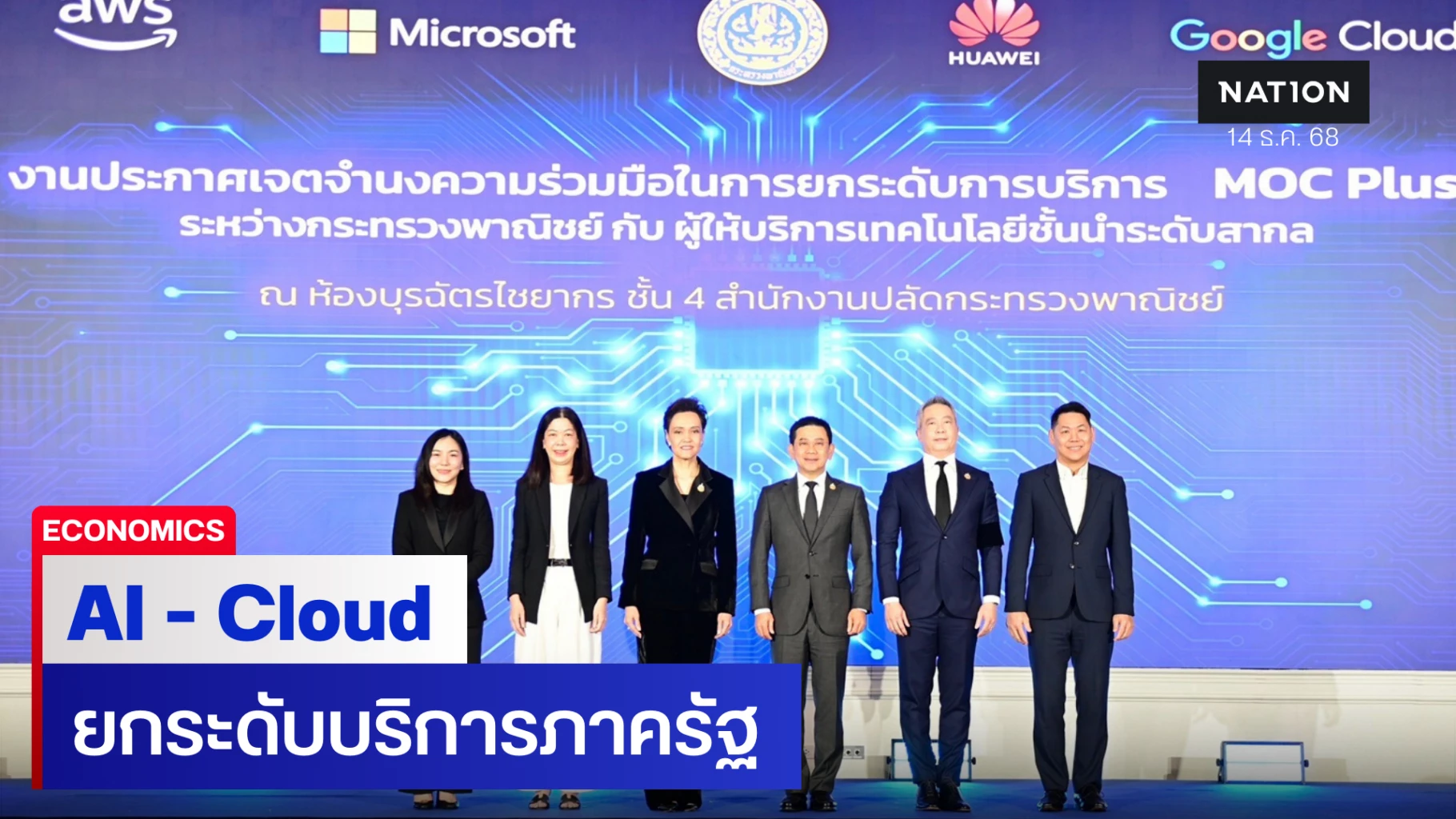“ประกาศเจตจำนงความร่วมมือ” ระหว่างกระทรวงพาณิชย์และพันธมิตรเทคโนโลยีระดับโลก ได้แก่ Huawei, Google, Amazon Web Services และ Microsoft ยืนยันบทบาทสำคัญในการสนับสนุนโครงสร้างพื้นฐานด้าน AI และ Cloud เพื่อพัฒนา MOC Plus ให้ก้าวสู่การเป็นแพลตฟอร์มรัฐบาลดิจิทัลที่สมบูรณ์