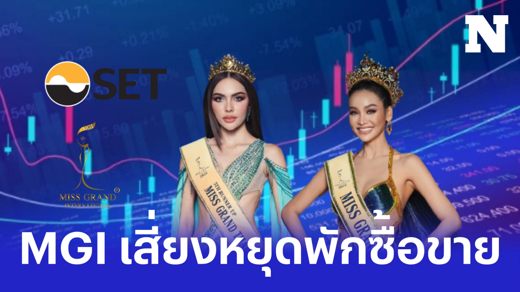 รายงานข่าวจากตลาดหลักทรัพย์แห่งประเทศไทย (ตลท.) เปิดเผยว่า ตลท.ขอให้ผู้ลงทุนศึกษาข้อมูลที่เป็นพื้นฐานของหลักทรัพย์บริษัท มิสแกรนด์ อินเตอร์เนชั่นแนล จำกัด (มหาชน) หรือ MGI ก่อนตัดสินใจซื้อขายหลักทรัพย์ โดย MGI หยุดพักการซื้อขายเมื่อวันที่23 กุมภาพันธ์ 2567 เป็นเวลา 1 วัน เนื่องจากมีสภาพการซื้อขายเปลี่ยนแปลงไปไม่สอดรับปัจจัยพื้นฐาน และกลับมาซื้อขายได้ ตั้งแต่การซื้อขายในภาคเช้าของวันที่ 27 กุมภาพันธ์ 2567 เป็นต้นไป