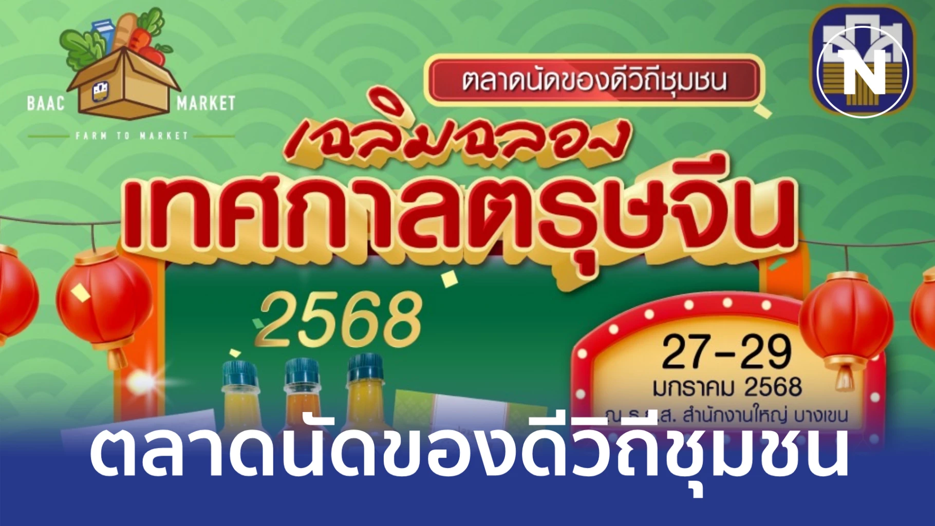 ทั้งนี้ ธ.ก.ส. ขอเชิญชวนพี่น้องประชาชนมาร่วมชมและเลือกซื้อสินค้าเกษตรและ OTOP ที่มีคุณภาพจากเกษตรกรที่ส่งตรงจากฟาร์ม เป็นของขวัญสุดพิเศษ เพื่อเป็นมงคลในเทศกาลตรุษจีนในงานตลาดนัดของดีวิถีชุมชน ภายใต้ธีม " Happy Chinese New Year 2025 " ระหว่างวันที่ 27-29 ม.ค.2568 ที่ ธ.ก.ส. สำนักงานใหญ่ และพิเศษสุดในงานนี้เมื่อซื้อสินค้าภายในงานรับลุ้นโชค 2 ต่อทันที โชคต่อที่ 1 เมื่อซื้อสินค้าครบ 500 บาท แลกรับ คูปองแทนเงินสด 20 บาท (1 คน ต่อ 1 สิทธิ์ ต่อ 1 วัน) โชคต่อที่ 2 มีสิทธิ์ลุ้นรับฮั๋งเปา 100 บาท จำนวน 9 รางวัล หรือสามารถเลือกซื้อสินค้าเกษตรสุดพรีเมี่ยมพร้อมโปรโมชันมากมายได้ง่ายๆ เพียงกดเข้าที่ www.BAAC-FarmersMarket.com สอบถามรายละเอียดเพิ่มเติมได้ที่ Call Center 02 555 0555