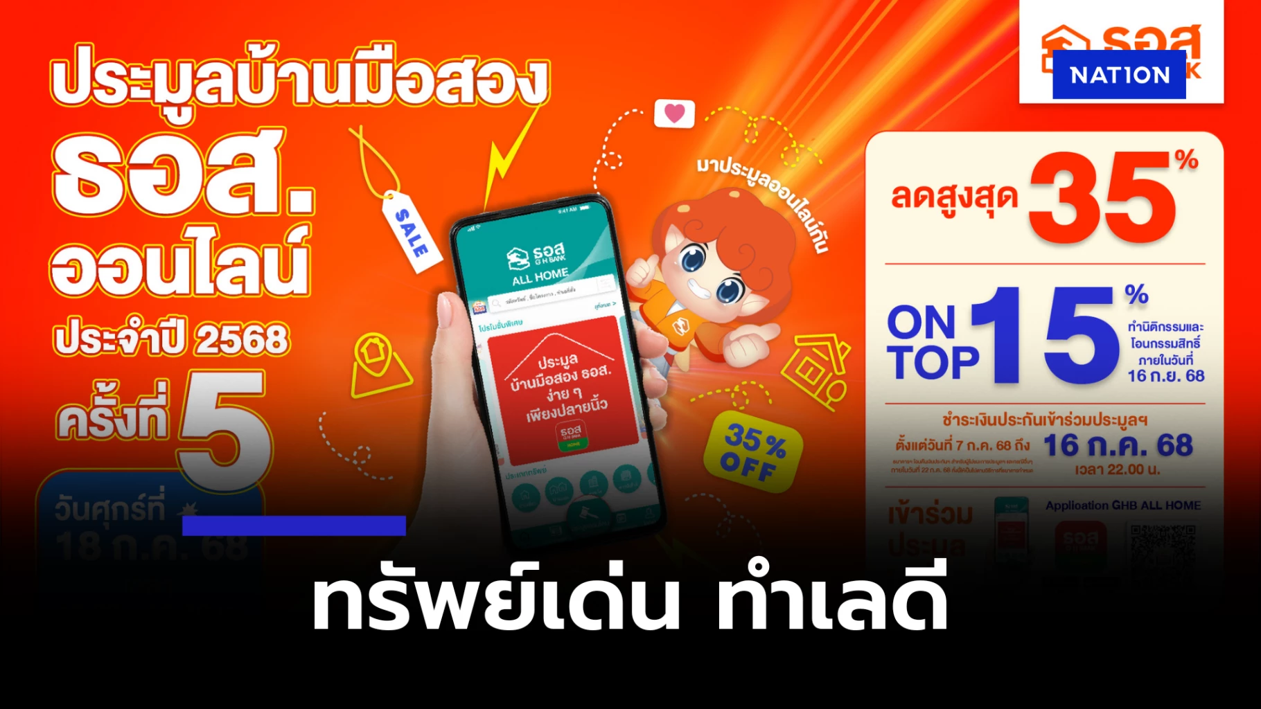 นายวิทยา แสนภักดี รองกรรมการผู้จัดการ กลุ่มงานปรับโครงสร้างหนี้ ธนาคารอาคารสงเคราะห์ (ธอส.) เปิดเผยว่า ธอส. เพิ่มทางเลือกในการมีที่อยู่อาศัยให้กับคนไทยมากขึ้น ผ่านช่องทางที่เข้าถึงได้อย่างสะดวก ด้วยการจัดงาน “ประมูลบ้านมือสองออนไลน์ ประจำปี 2568 ครั้งที่ 5 ประจำเดือนกรกฎาคม” ในวันศุกร์ที่ 18 กรกฎาคม 2568 ระหว่างเวลา 12.00 -12.30 น. ผ่าน Application : GHB ALL HOME โดยนำทรัพย์เด่น ทำเลดี ราคาคุ้มค่าถึง 1,364 รายการทั่วประเทศ ทั้งประเภทบ้านเดี่ยว บ้านแฝด ทาวน์เฮ้าส์ คอนโดมิเนียม อาคารพาณิชย์ และที่ดินเปล่า มาจำหน่ายในราคาพิเศษด้วยส่วนลดสูงสุดถึง 35% จากราคาปกติ โดยเป็นทรัพย์ในพื้นที่กรุงเทพ ฯ และปริมณฑล จำนวน 491 รายการ