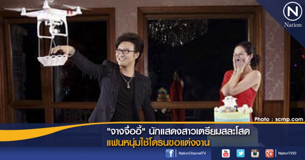 จาง จื่ออี้ นักแสดงสาวชื่อดังของจีน กำลังเตรียมตัวเข้าพิธีวิวาห์ หลังจากแฟนหนุ่มนักดนตรีทำเซอร์ไพร์ซขอแต่งงานด้วยโดรน สื่อมวลชนในจีน รายงานว่า ในขณะที่จาง จื่ออี้ กำลังจัดงานเลี้ยงเนื่องในวันคล้ายวันเกิดอายุครบ 36 ปี หวัง เฟิง แฟนหนุ่มร็อคเกอร์ชาวจีน วัย 43 ปี ได้ส่งโดรนสีขาวนำแหวนเพชรไปให้เธอ ก่อนจะนั่งคุกเข่าขอแต่งงาน ซึ่งเธอตอบรับคำขอด้วยน้ำตา ท่ามกลางเสียงปรบมือแสดงความยินดีจากบรรดาแขกเหรื่อที่อยู่ในเหตุการณ์