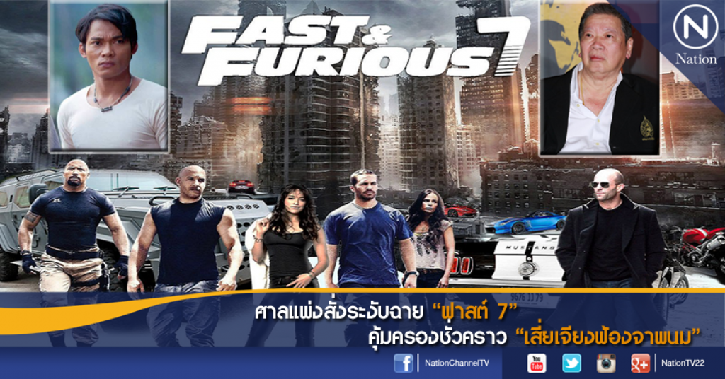 --ศาลแพ่ง ถนนรัชดาภิเษก --26 มี.ค.58 --นายสุวัตร อภัยภักดิ์ ทนายความรับมอบอำนาจนาย สมศักดิ์ เตชะรัตนประเสริฐ หรือเสี่ยเจียง ผู้ก่อตั้งบริษัท สหมงคลฟิล์ม อินเตอร์เนชั่นแนล จำกัดและประธานสหมงคลกรุ๊ป ผู้ประกอบธุรกิจภาพยนตร์ เป็นโจทก์ ยื่นฟ้องนายพนมหรือทัชชกร ยีรัมย์ หรือจา พนม พระเอกภาพยนตร์บู๊ชื่อดัง ต้มยำกุ้ง และองค์บาก อายุ 38 ปี , บริษัทยูนิเวอร์แซล พิคเจอร์ส ซึ่งอำนวยการสร้างภาพยนตร์ Fast and Furious 7 (ฟาสต์ แอนด์ ฟิวเรียส ภาค 7) และบริษัท ยูไนเต็ด อินเตอร์เนชั่นแนล พิคเจอร์ส (ฟาร์อีสต์) จำกัด หรือยูไอพี ประเทศไทย เป็นจำเลยที่ 1-3 เรื่องละเมิด ผิดสัญญา เรียกค่าเสียหาย 1,600 ล้านบาทพร้อมดอกเบี้ยร้อยละ 7.5 ต่อปี จากกรณีที่นายพนม หรือ จา พนม ร่วมแสดงภาพยนตร์บริษัทอื่น ทั้งที่นายพนม ยังติดสัญญาการแสดงกับบริษัท สหมงคลฟิล์ม ฯ ที่จะสิ้นสุดสัญญา ปี 2566 โดยการยื่นฟ้องนายสุวัตร ทนายความโจทก์ ยังได้ยื่นคำร้องขอให้ศาลไต่สวนฉุกเฉินเพื่อมีคำสั่งคุ้มครองชั่วคราว ระงับการฉายภาพยนตร์เรื่อง Fast and Furious 7 ที่นายพนม หรือจา พนม จำเลยที่ 1 ร่วมแสดง ทั้งที่ยังมีภาระผูกพันกับสัญญาการแสดงกับบริษัท สหมงคลฟิล์ม ซึ่งภาพยนตร์ดังกล่าวมีกำหนดฉายในประเทศไทยในวันที่ 1 เม.ย.นี้ ขณะที่ศาลพิจารณาคำร้องแล้ว ให้ดำเนินการไต่สวนฉุกเฉินทนายฝ่ายโจทก์ จนแล้วเสร็จเมื่อเวลา 17.00 น.โดยไม่อนุญาตให้ผู้ที่ไม่เกี่ยวข้องกับคดีร่วมฟังการไต่สวน ภายหลังนายสุวัตร ทนายความบ.สหมงคลฟิล์มโจทก์ เปิดเผยผลการไต่สวนว่า เมื่อไต่สวนพยานแล้ว 2 ปาก ศาลได้มีคำสั่งคุ้มครองชั่วคราวโจทก์ โดยให้ระงับการฉายภาพยนตร์ Fast and Furious 7 ไว้เป็นการชั่วคราวจนกว่าศาลจะมีคำพิพากษาในคดี หรือคำสั่งเป็นอย่างอื่น ซึ่งคำสั่งศาลดังกล่าวมีผลการระงับฉายภาพยนตร์ภายในประเทศเท่านั้น นายสุวัตร ยังกล่าวอีกว่า เหตุที่ต้องนำมาฟ้องต่อศาลแพ่งในวันนี้ และขอคุ้มครองชั่วคราวนั้น เนื่องจากทราบว่าภาพยนตร์ดังกล่าว กำหนดฉายรอบสื่อมวลชนในวันที่ 31 มี.ค. และฉายรอบจริงในวันที่ 1 เม.ย.นี้ ซึ่งการนำภาพยนตร์ที่ จา พนม ร่วมแสดง แต่จา พนม ยังติดสัญญากับสหมงคลฟิล์มมาฉายนั้น ถือเป็นการละเมิดสัญญา จึงได้เรียกค่าเสียหาย 1,600 ล้านบาท โดยจา พนม ได้เซ็นสัญญา กับสหมงคลฟิล์มไว้ เดือน ก.ค.56 และจะหมดสัญญาในปี 2566 ซึ่งค่าเสียหายที่เราเรียกไป คำนวณ จากการซื้อตัว จา พนม มาจากบริษัทอื่น รวมถึงการปลุกปั้นและโปรโมทภาพยนตร์ต่างๆ กระทั่งมีชื่อเสียง ทั้งนี้สำหรับการพิจารณาคดีหลัก เรื่องการผิดสัญญา ศาลแพ่ง ได้นัดชี้สองสถานเพื่อกำหนดวันสืบพยานและประเด็นน