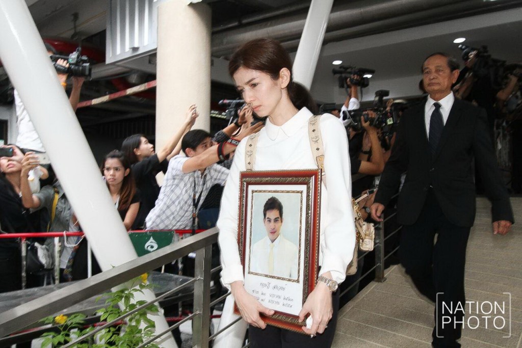 โบว์ แวนด้ากับปินน้องชายคนเล็ก. ร่ำไห้ขณะเคลื่อนศพปอขึ้นรถเพื่อเดินทางไปบุรีรัมย์