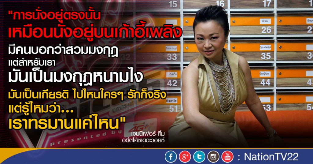 ไหนจะต้องตบตีกับโค้ชอีก 3 คน ที่ฝีปากแต่ละคนไม่ธรรมดา ปากร้ายมากเวลาต้องแย่งชิงกัน ไหนจะต้องโดนคนข้างนอก ในโลกโซเชียลจิกตีอีก มันเป็นสิ่งที่ต้องให้กำลังใจดาอย่างมาก ใครที่รักเรา เป็นกำลังใจให้เรา ขอบอกเลยว่า อยากให้เป็นกำลังใจให้ดา ให้ผู้หญิงเราในฐานะที่เป็นโค้ชผู้หญิงเหมือนกัน เราเคยนั่งอยู่ตรงนั้น เรารู้ดี การนั่งอยู่ตรงนั้น เหมือนนั่งอยู่บนเก้าอี้เพลิง มีคนบอกว่า สวมมงกุฏ แต่สำหรับเรามันเป็นมงกุฏหนามไง มันเป็นเกียรติ ไปไหนใครๆ รักก็จริง แต่รู้ไหมว่า เราทรมานแค่ไหน (หัวเราะ) ไม่มีใครรู้ว่ามันลำบากแค่ไหน มันเป็นเรื่องของการตัดสินอนาคต ชี้นำอนาคตของคน มันไม่ใช่อนาคตของเราคนเดียว เราไม่เคยกลัวว่า คนดูจะวายังไง ไม่ได้กลัวคนเกลียดเรา สิ่งที่กลัวมากที่สุด คือคนเกลียดเด็กของเรา"
