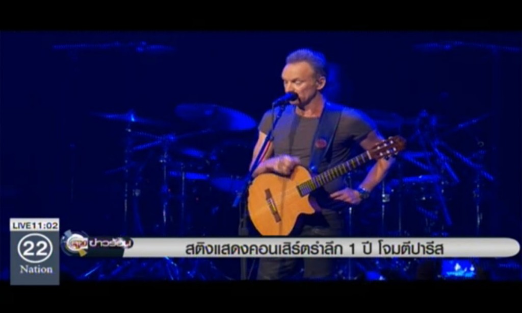 การแสดงของสติงในงานนี้ เต็มไปด้วยสัญลักษณ์ และความรู้สึก เพื่อร่วมรำลึกวันครบรอบ 1 ปีในวันนี้ สำหรับเหตุการณ์การโจมตีฝรั่งเศสโดยกลุ่มผู้ก่อการร้ายครั้งที่นองเลือดที่สุดที่มีผู้เสียชีวิตรวม 130 รายแต่ขณะเดียวกัน วงดนตรี Eagles of Death Metal วงดนตรีอเมริกันที่เป็นวงที่เปิดคอน เสิร์ตในวันเกิดเหตุ กลับไม่ได้รับอนุญาติให้ขึ้นแสดงในการกลับมาเปิดให้บริการของคอนเสิร์ตฮอลล์แห่งนี้ หลังนักร้องนำของวงบอกว่าเจ้าหน้าที่รักษาความปลอดภัยบางคนของที่นี่ ที่เป็นมุสลิม เกี่ยวข้องกับการโจมตีด้วย
