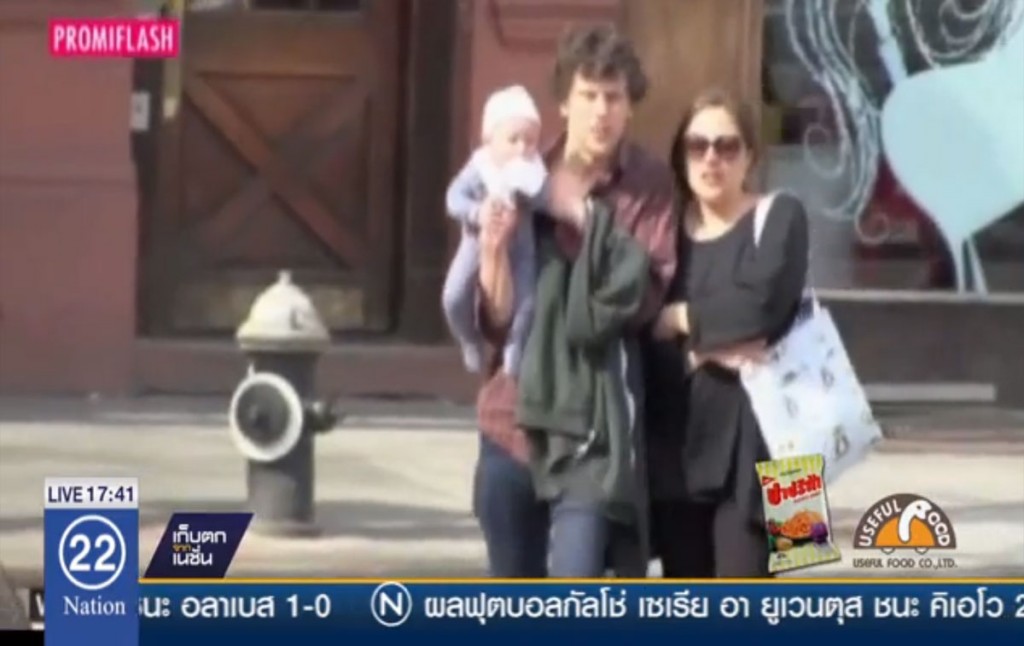 แหล่งข่าวรายงานว่า หนุ่มเจสซี่ ไอเซนเบิร์ก และสาวแอนนา สเตราท์ ได้ออกมาเดินเล่นในตอนเช้าพร้อมกับลูกน้อยของพวกเขาในช่วงเช้าตรู่ของมหานครนิวยอร์ค เมื่อไม่นานมานี้ค่ะ