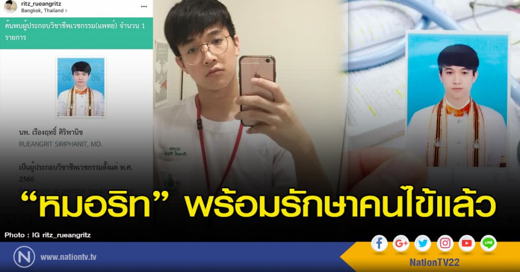 โดยคุณหมอริทก็กำลังจะใช้ทุน ด้วยการเป็นหมอแผนก อายุรศาสตร์ ที่คณะแพทย์ศาสตร์ โรงพยาบาลธรรมศาสตร์เฉลิมพระเกียรติ งานนี้ทำเอาสาวๆหลายๆคนก็อยากจะเป็นป่วยกันเป็นแถวเลยใช่มั้ย...