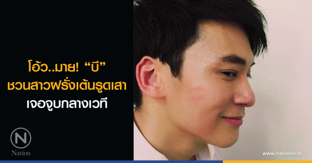 โดยในจังหวะที่ฝรั่งทั้งสองสาว กำลังเต้นอย่างเขินๆ อยู่นั่นเอง ก่อนที่เพลงจะจบลง สงสัยความน่ารักของบี้จะเตะตา เลยถูกฝรั่งสาวคนหนึ่งแอบขโมยจุ๊บแก้มกลางเวที เรียกเสียงกรี๊ดสนั่นหวั่นไหว