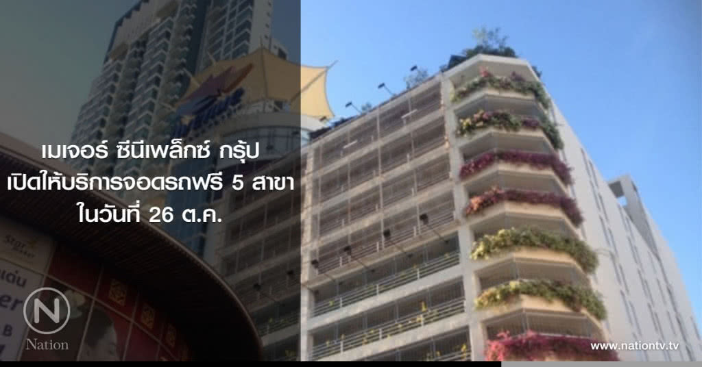 แต่ในส่วนของอาคารจอดรถ ทางบริษัทฯ จะเปิดให้บริการจอดรถฟรีใน5สาขาสแตนอโลนคือเมเจอร์ ซีนีเพล็กซ์รัชโยธิน,ปิ่นเกล้า,สุขุมวิท,รังสิตและเอสพลานาด ซีนีเพล็กซ์ งามวงศ์วาน-แครายเพื่ออำนวยความสะดวกแก่ประชาชนที่ต้องการเดินทางเข้าร่วมพระราชพิธีถวายพระเพลิงพระบรมศพ พระบาทสมเด็จพระปรมินทรมหาภูมิพลอดุลยเดช บรมนาถบพิตร โดยลูกค้าสามารถนำรถมาจอดได้ฟรีเพื่อต่อรถเดินทางเข้าร่วมพระราชพิธีถวายพระเพลิงพระบรมศพในวันพฤหัสบดีที่26ตุลาคม2560ได้ตั้งแต่เวลา 07.00-24.00 น.