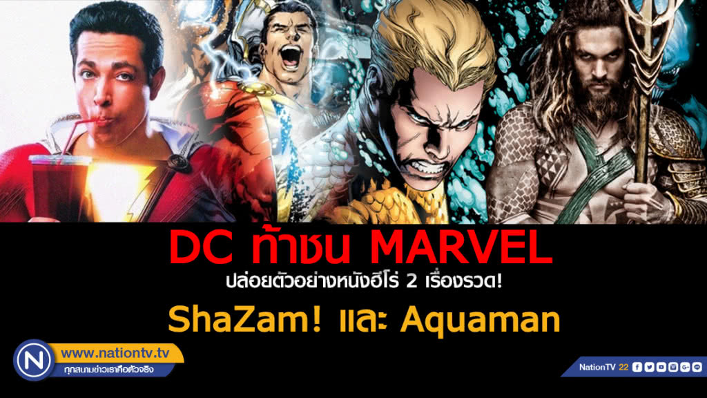 DC ท้าชน Marvel...ปล่อยตัวอย่างหนังฮีโร่ 2 เรื่องรวด! ShaZam! และ Aquaman