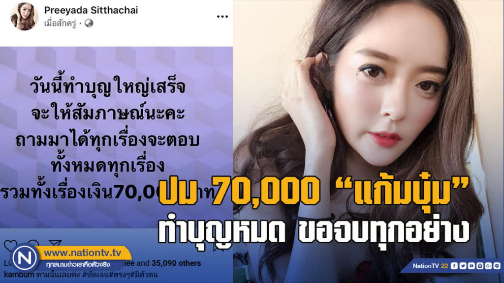จนเมื่อวานนี้ แก้มบุ๋ม ได้โพสต์ในไอจี ของตนเองว่า "วันนี้ทำบุญใหญ่เสร็จจะให้สัมภาษณ์นะคะ ถามมาได้ทุกเรื่อง จะตอบทั้งหมดทุกเรื่อง รวมทั้งเรื่อง 70,000 บาท"