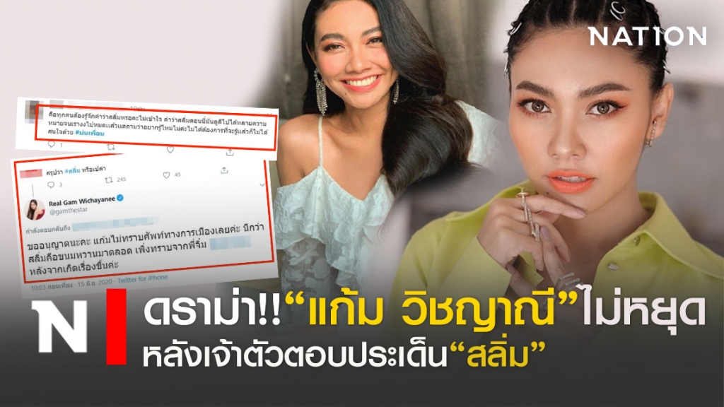 ซึ่งแก้ม ก็ตอบกลับไปว่า "ขออนุญาตนะคะ แก้ม ไม่ทราบศัพท์ทางการเมืองเลยค่ะ นึกว่าสลิ่มคือขนมหวานมาตลอด เพิ่งทราบจากพี่ *** หลังจากเกิดเรื่องขึ้นค่ะ"