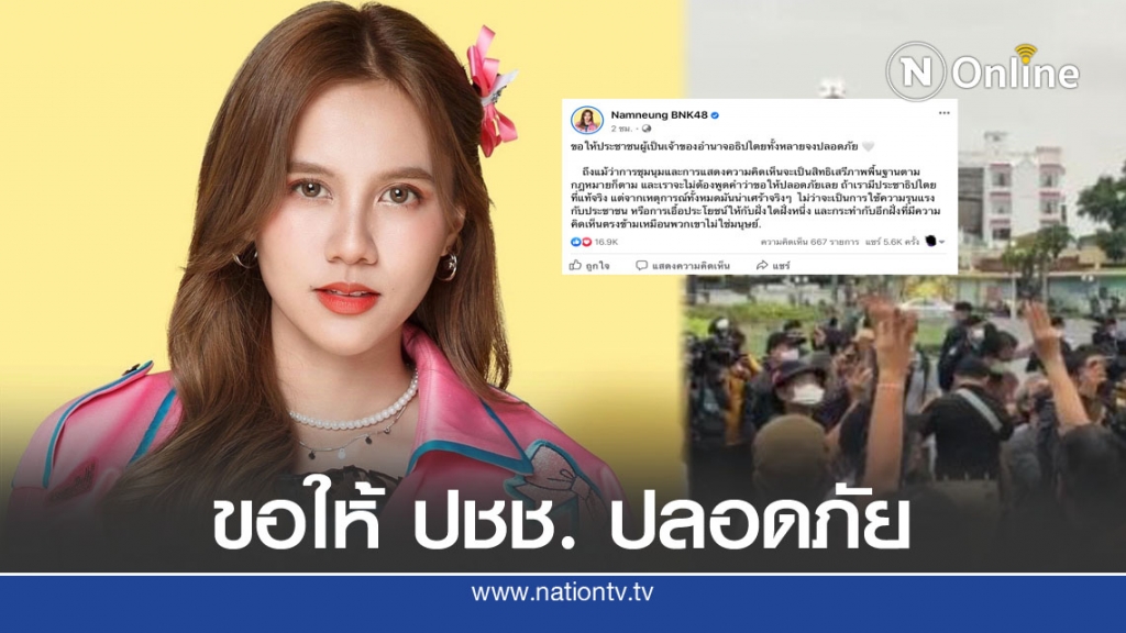 ล่าสุดไอดอลสาวน้ำหนึ่ง มิลิน ดอกเทียน ได้ออกมาแสดงจุดยืนทางการเมืองอีกหนึ่งคน โดยเธอได้โพสต์เฟซบุ๊ก Namneung BNK48 ของเธอ ระบุข้อความว่า