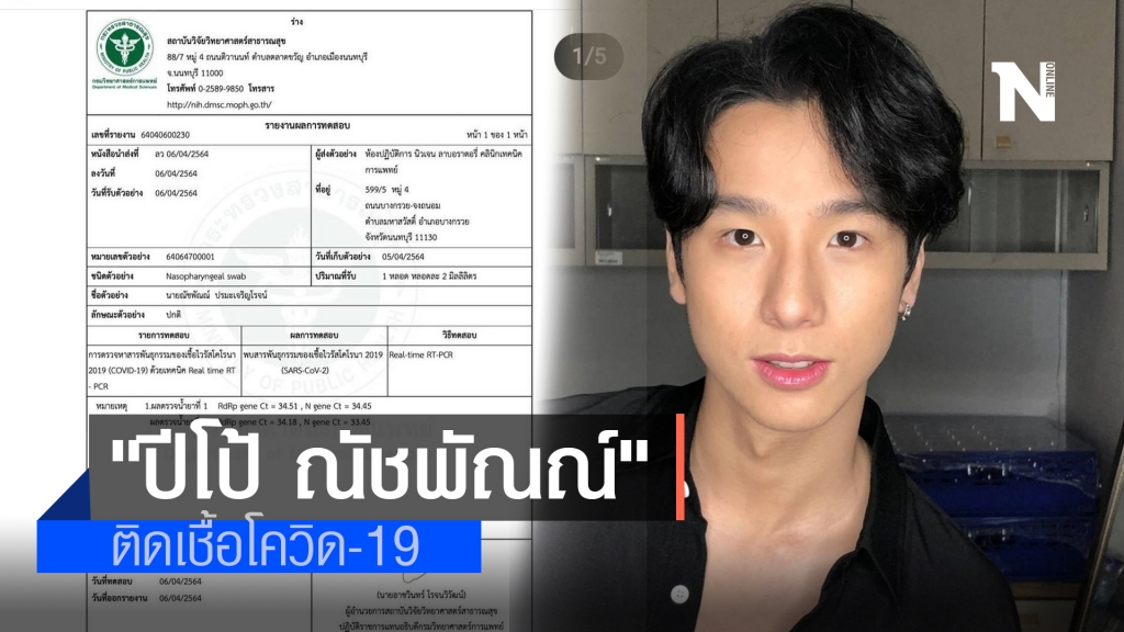 เมื่อวันที่ 6 เม.ย.64 หลังจากโควิดกลับมาระบาดหนักอีกรอบ โดยมีคนในวงการบันเทิงติดเชื้อหลายราย ล่าสุดนักแสดงหนุ่ม ปีโป้ ณัชพัณณ์ ปรมะเจริญโรจน์ โพสต์ไอจี nutchapanp ระบุว่า หลังจากที่โป้ได้ออกมาแจ้งถึงความเสี่ยงในการติดเชื้อ COVID-19 ไปก่อนหน้านี้ ตอนนี้ผลการตรวจหาเชื้อของโป้ออกมาเป็น Positive/Detected (ติดเชื้อ COVID-19) นะครับ