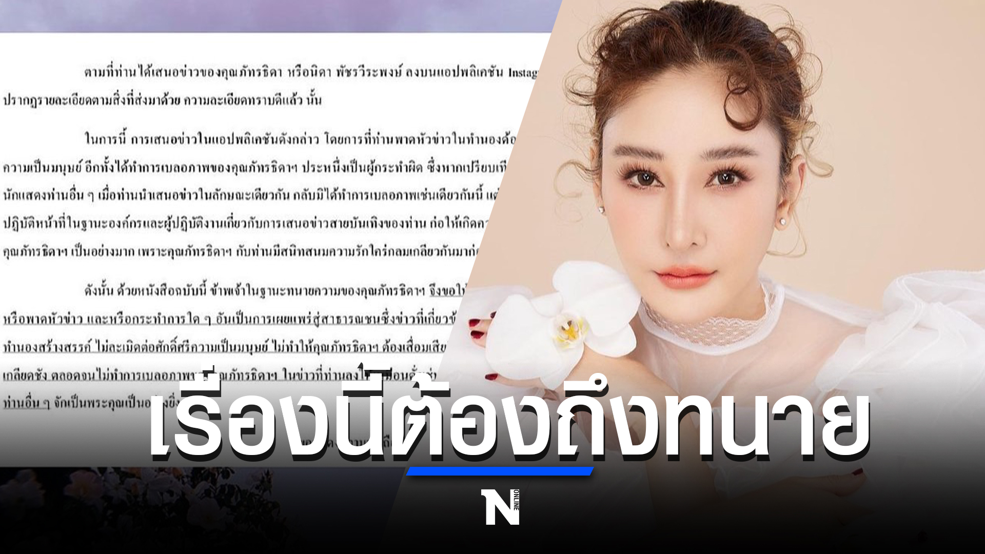 โดยนักแสดงสาว แตงโม นิดา ได้โพสต์ข้อความจากทนายความส่วนตัวผ่านยังIGส่วนตัวพร้อมแท็กไปถึงสื่อดัง โดยระบุข้อความว่า…..ตามที่ท่านได้เสนอข่าวของคุณภัทรธิดา หรือนิดา พัชรวีระพงย์ ลงบนแอปพลิเคชัน Instagram ซึ่งปรากฎรายละเอียดตามสิ่งที่ส่งมาด้วย ความละเอียดทราบดีแล้วนั้นในการนี้ การเสนอข่าวในแอปพลิเคชันดังกล่าว โดยการที่ท่านพาดหัวข่าวในทำนองด้อยค่าศักดิ์ศรีความเป็นมนุษย์