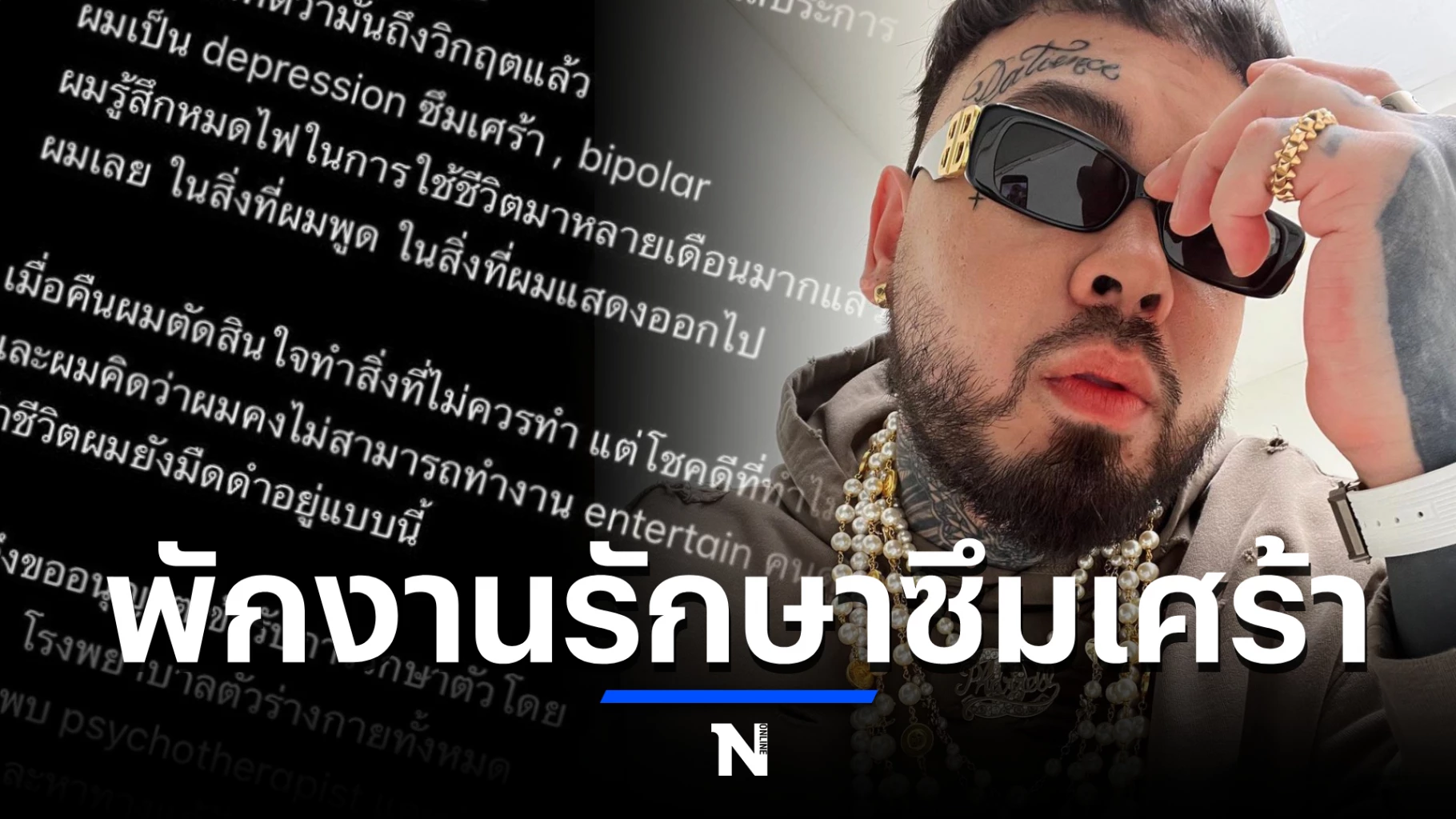 "ผมไม่รู้ว่ามันจะใช้เวลานานแค่ไหน ผมอาจจะหาย หรือไม่หายก็ได้ แต่ตอนนี้ผมขอหายไปก่อนเพื่อรักษาตัวครับ ขอโทษทุกคนครับ ถ้าผมยังรักตัวเองไม่ได้ ผมก็รักคนอื่นไม่ได้หรอกครับ"