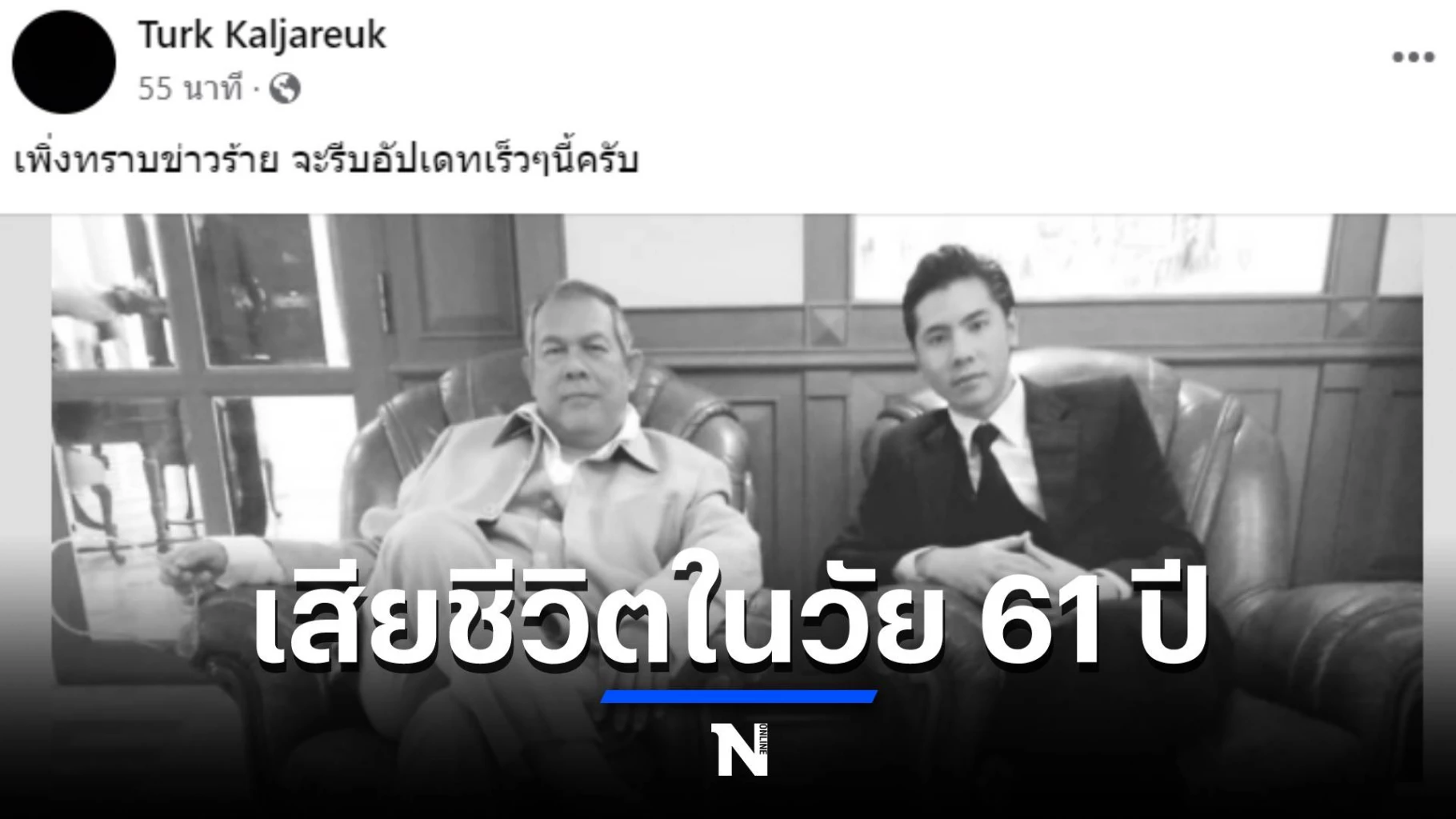 กลายเป็นข่าวเศร้าวงการบันเทิง เมื่อทายาทกันตนา “ต๊ะ นิรัตติศัย กัลย์จาฤก” ผู้กำกับชื่อดัง-ผู้จัดละคร เสียชีวิตแล้วอย่างสงบ ท่ามกลางความเศร้าเสียใจของคนในครอบครัว โดยเฟซบุ๊กของ “เติร์ก คหบดี กัลย์จาฤก” ลูกชายของต๊ะ ได้โพสต์ภาพขาวดำคู่กับคุณพ่อ พร้อมทั้งเขียนข้อความสุดเศร้าว่า “เพิ่งทราบข่าวร้าย จะรีบอัปเดทเร็วๆ นี้ครับ” โดยมีเพื่อนๆ ที่ทราบข่าวร้ายต่างแสดงความเสียใจเป็นจำนวนมาก เบื้องต้นยังไม่ทราบสาเหตุการเสียชีวิต