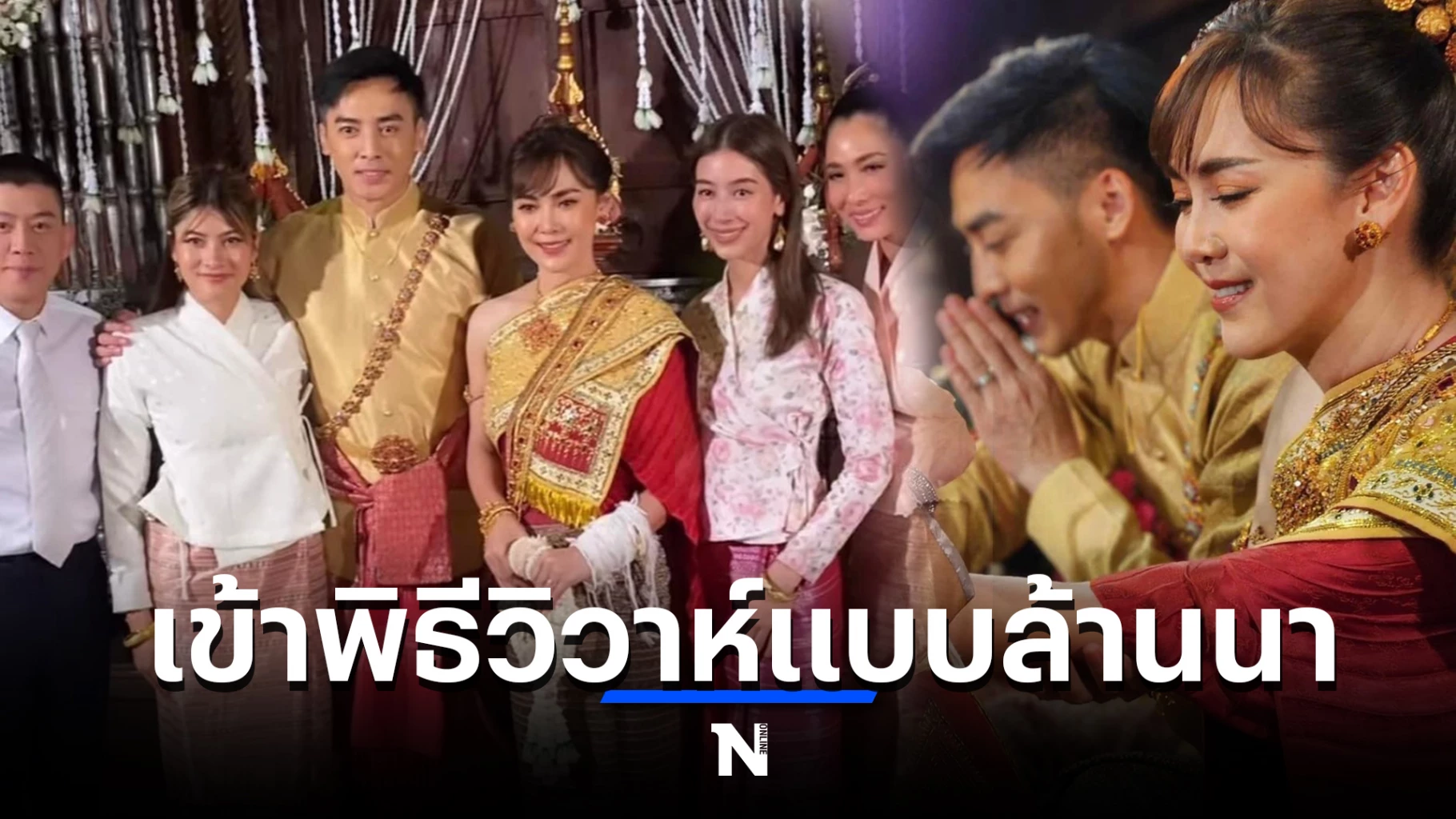โดยในงานแขกทุกคนใส่ชุดพื้นเมืองล้านนา ในพิธีการมีขบวนแห่ขันหมาก พิธีบายศรีสู่ขวัญ และเลี้ยงขันโตก พร้อมกับการแสดงทั้งรำและดนตรีพื้นเมือง ซึ่งมีเพื่อนดาราในวงการอย่าง มิ้นต์ ชาลิดา, มาร์กี้ ราศรี, แพง ภิชาภัช, ไอซ์ พิชพงศ์ ฯลฯไปร่วมแสดงความยินดีกับทั้งคู่ด้วย