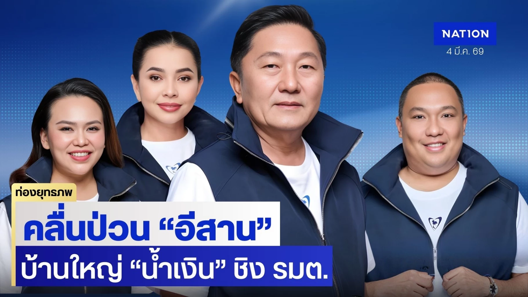 4 มีนาคม 2569 เมืองช้างตีตั๋ว ปกรณ์ มุ่งเจริญพร เต็งคั่ว รมต. ตามสูตรโบนัสเนวิน ยกจังหวัด 1 เก้าอี้ บ้านใหญ่อีสาน 8-9 ซุ้มซุ่มขอแบ่งเค้ก