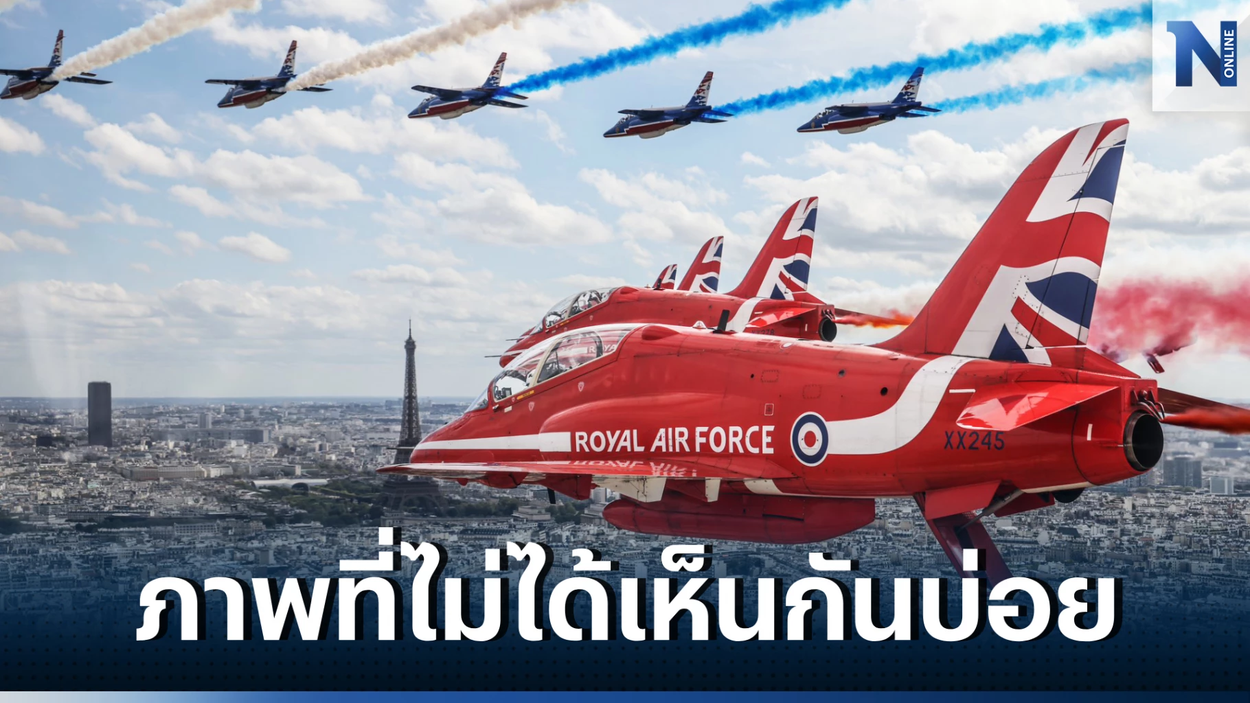 การโชว์ผาดแผลงครั้งนี้ พระเจ้าชาร์ลส พระราชินีคามิลลา ประธานาธิบดีเอ็มมานูเอล มาครง และนางบริจิตต์ สุภาพสตรีหมายเลข 1 ได้ร่วมชมเครื่องบินรบ Red Arrows ของกองทัพอากาศสหราชอาณาจักรขณะทะยานอยู่กับฝูงบิน Patrouille de France ของฝรั่งเศสที่ตระการตาเป็นอย่างยิ่ง